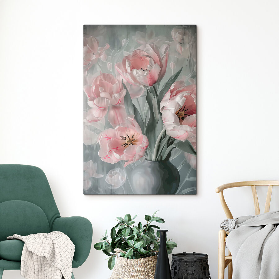 Imaginați-vă că vă treziți cu aceste lalele imposibil de delicate care vă întâmpină în fiecare zi! Această piesă “Tablouri s40193” din categoriile Artă plastică, Flori și Artă populară pe pânză – oh, este un deliciu vizual. Roșeața moale a petalelor, verdele blând al frunzelor… este liniștitor, nu-i așa? Și este suficient de mare pentru a face o declarație, dar nu atât de mare încât să vă ocupe întregul perete.