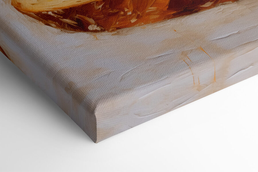 Această imprimare pe pânză care prezintă o felie de pâine, cu găuri încântătoare, va adăuga cu siguranță o notă jucăușă oricărui spațiu. Imaginați-vă că intrați într-o bucătărie confortabilă sau într-o zonă de luat masa relaxată, și bam – iată-o! O mică piesă de artă care stârnește bucurie și, poate, o poftă de o felie de pâine prăjită cu unt. Culorile sale calde invită la confort, ceea ce o face un bun punct de pornire a conversației. Fie că este pentru un prieten gurmand sau doar pentru cineva care apreciază arta de zi cu zi, acest decor unic aduce o felie de fantezie pe pereți. Perfect pentru acel loc gol care are nevoie de puțină dragoste!