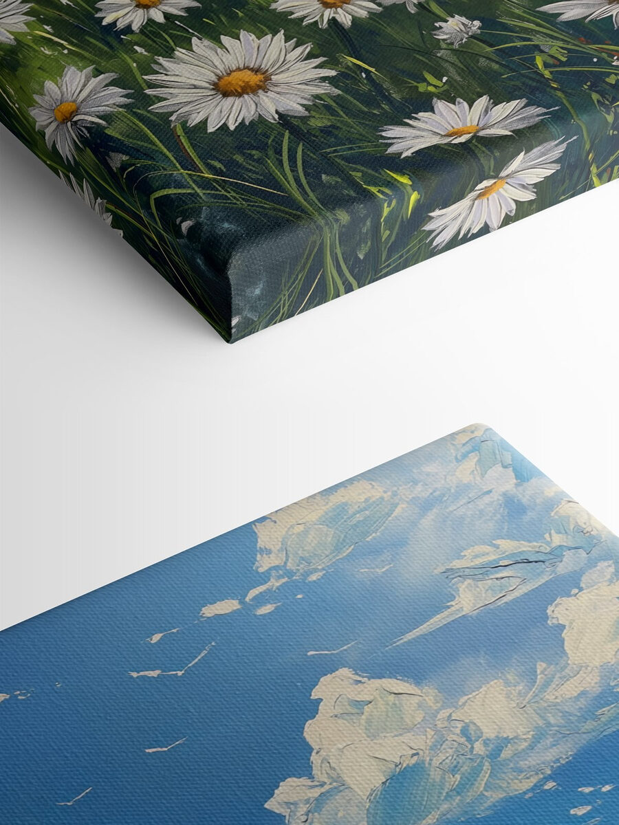 Imaginați-vă că pășiți pe o pajiște însorită, unde margaretele dansează în adierea vântului, iar copacii sunt înalți, șoptindu-vă secretele sălbăticiei. Această imprimare pe pânză aduce exact acel sentiment în spațiul dvs. Culorile vibrante ale câmpului și norii jucăuși de deasupra creează un sentiment de bucurie care este greu de ignorat. Este ca o invitație din partea naturii de a vă relaxa, de a respira adânc și poate chiar de a visa cu ochii deschiși un pic. Agățați-o într-un colț confortabil sau deasupra unei canapele însorite și priviți cum transformă fără efort atmosfera. Perfect pentru iubitorii de flori sau pentru oricine dorește o felie de aer liber în interior!