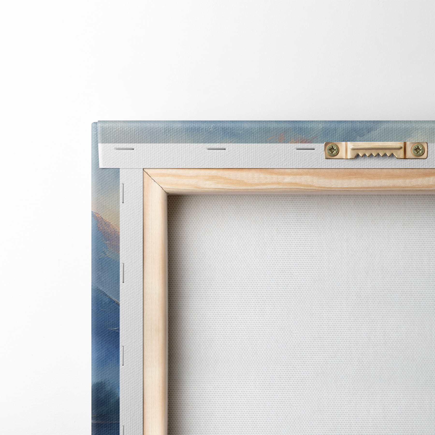 Imaginează-ți asta: un lac cu munți impunători, ale căror vârfuri ating norii moi în timp ce răsăritul îi sărută. Copacii își șoptesc unul altuia secrete în timp ce tu sorbi cafeaua, pierdut în serenada naturii. Această pânză te duce acolo – fiecare privire o mini-vacanță. Agață-l și dintr-o dată camera ta devine o cabană de munte. Prietenii jură că aud păsări. Este pace, dorință de călătorie și un strop de magie în acuarelă. Perfect pentru a visa, a vă imagina sau a vă preface că sunteți în cu totul altă parte. Visează în stil mare!