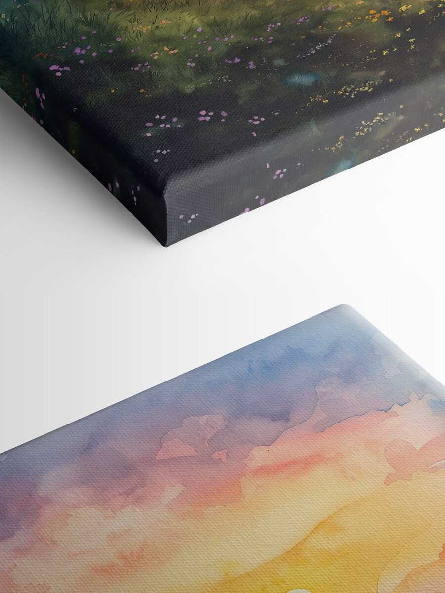 Transformați-vă spațiul cu această încântătoare imprimare pe pânză, care prezintă un peisaj senin ce surprinde esența unui apus de soare cald. Imaginați-vă o briză blândă în timp ce florile se leagănă, iar un copac robust se ridică înalt, șoptindu-vă secretele pajiștilor. Este ca și cum ai aduce o felie de natură în casă, fără furnici. Această piesă adaugă un strop de culoare și calm în orice cameră – perfectă pentru acel colț confortabil sau o notă de fantezie într-un birou acasă. Imaginați-vă doar sorbind ceai în timp ce vă bucurați de frumusețe. O mică evadare chiar pe perete. Cine nu și-ar dori asta?