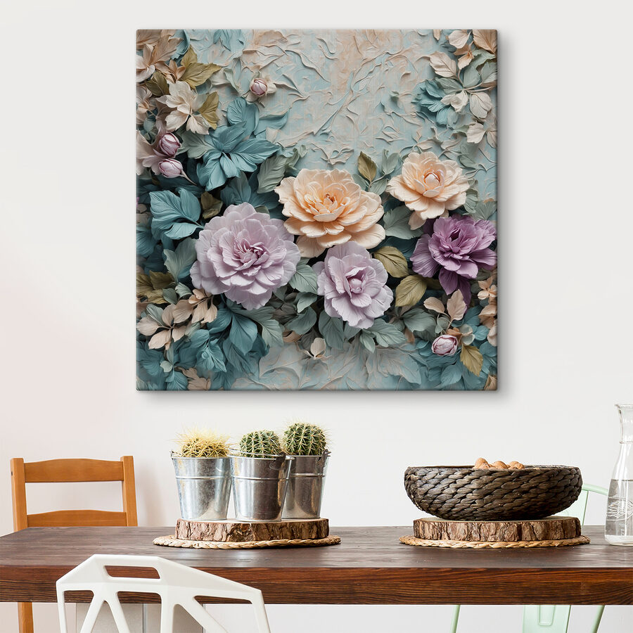 Transformați orice cameră cu această imprimare încântătoare pe pânză care înflorește cu farmec. Imaginați-vă o după-amiază confortabilă – lumina soarelui pătrunzând, o ceașcă caldă de ceai în apropiere și acest ansamblu uimitor de flori în acuarelă pe perete. Aceste nuanțe suave de liliac, piersică și teal invită la un sentiment de calm, făcând ca fiecare privire să se simtă ca o gură de aer proaspăt. Imaginează-ți că prietenii trec pe aici, admiră operele de artă, iar tu lași să se înțeleagă că peretele tău tocmai a primit o zi de spa gratuită. Este atingerea perfectă pentru a înveseli o bucătărie, o cameră de zi sau chiar un colț liniștit de lectură. Lasă florile să-și facă magia!