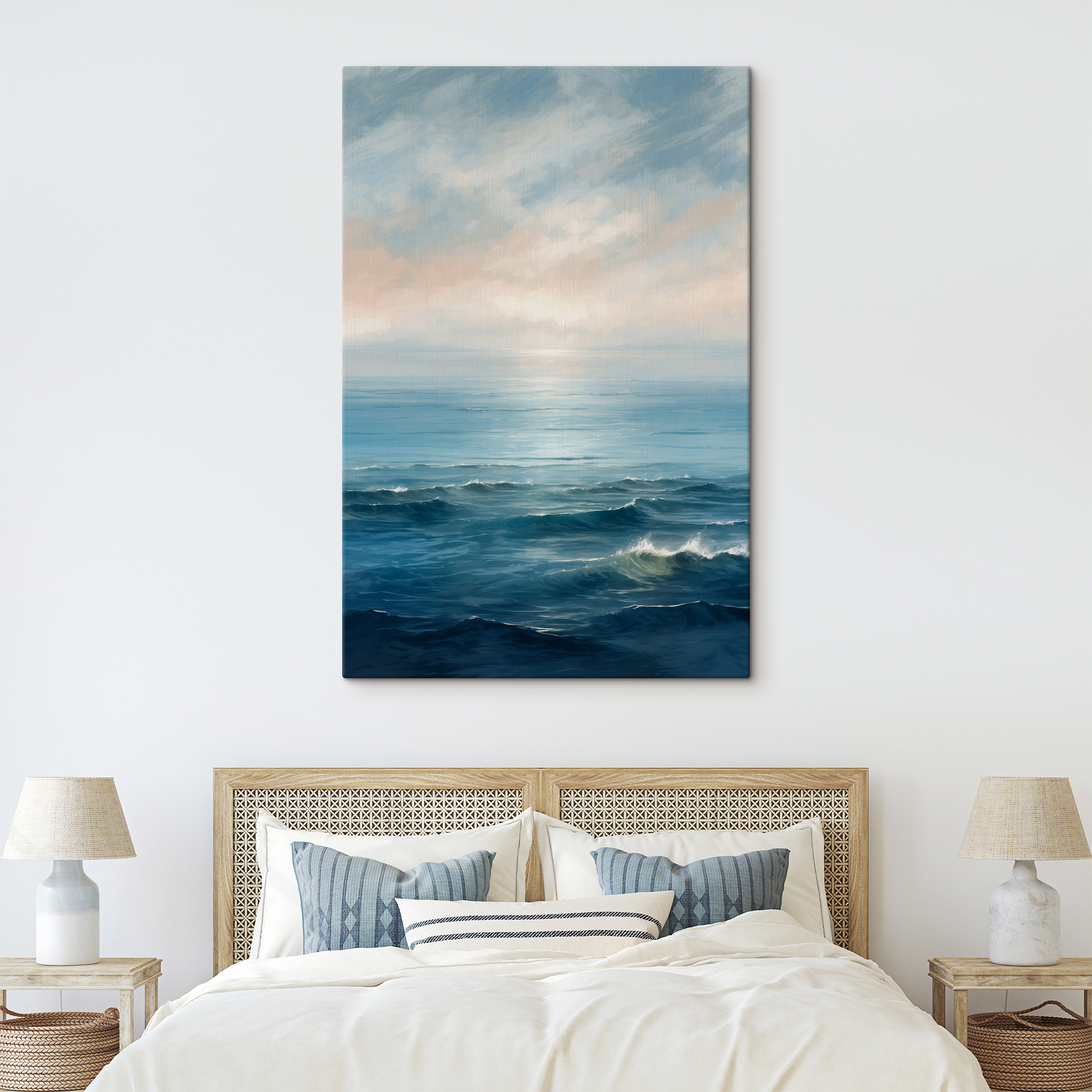 Scufundați-vă într-o evadare senină cu această imprimare uimitoare pe pânză a unui corp mare de apă, cu valuri blânde care par să șoptească nimicuri dulci. Imaginați-vă că intrați într-o cameră și vă întâmpină această scenă liniștită, calmându-vă instantaneu mintea după o zi lungă. Albastrul blând și cerul de vis invită la vise cu ochii deschiși la vacanțe pe plajă și după-amieze leneșe. Este ca și cum ai aduce o bucată de ocean chiar în casa ta – perfect pentru acele vibrații de plajă, fără a fi nevoie de nisip. Agățați-o, relaxați-vă și lăsați oceanul să vorbească. În plus, este o modalitate excelentă de a stârni conversații despre aventurile verii sau despre următoarea călătorie pe plajă. Cine nu și-ar dori o felie de paradis pe perete?