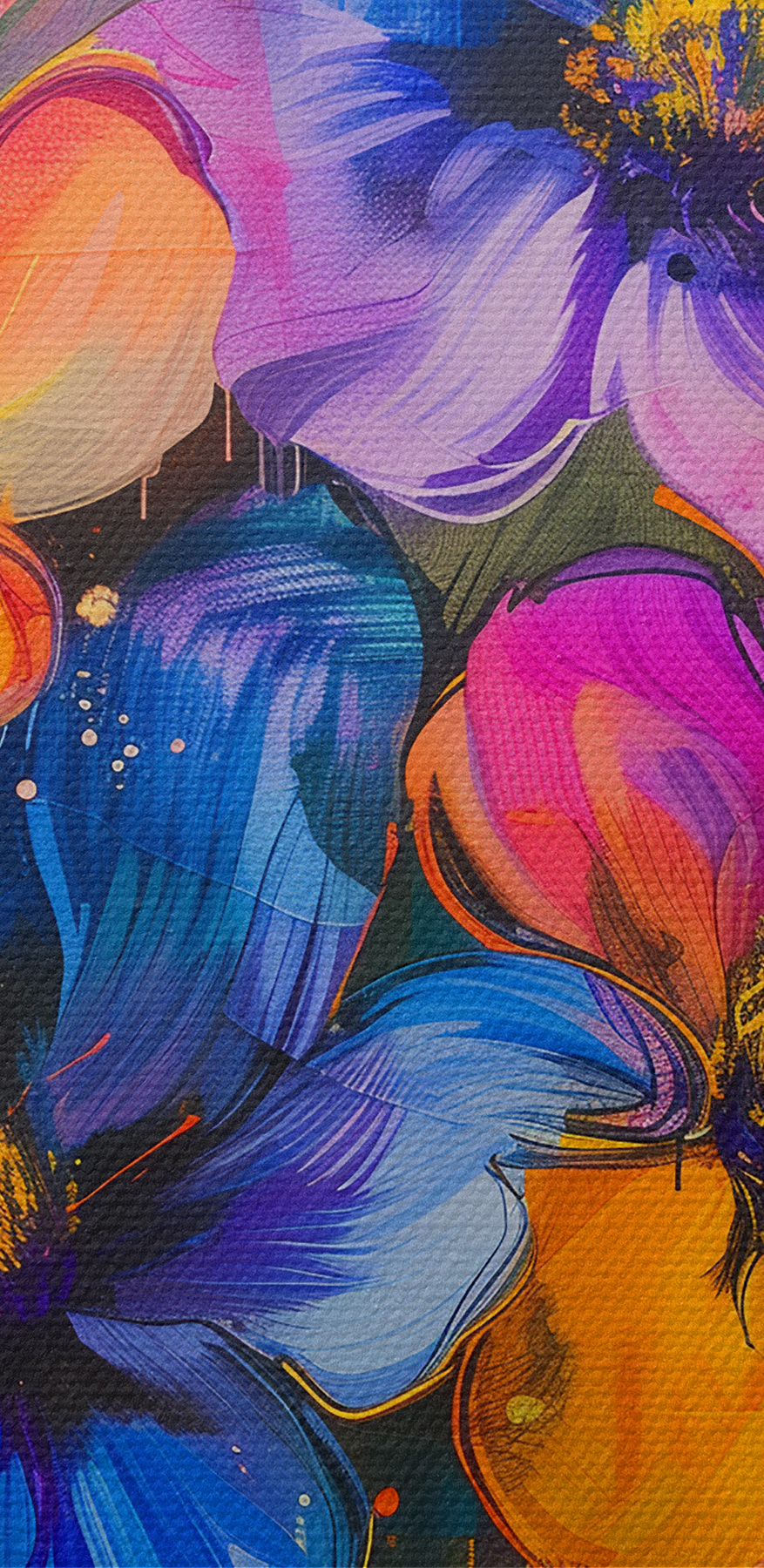 Transformați orice spațiu cu această imprimare pe pânză vibrantă, care prezintă un buchet vesel de flori stropite pe un fundal luminos. Culorile pline de viață invită la fericire, făcând din aceasta o sursă perfectă de conversație. Imaginați-vă-o agățată într-o cameră de zi confortabilă sau înveselind un birou – imaginați-vă zâmbetele pe care le va aduce. Este ca și cum ai avea o bucată de natură în interior, fără alergii! Fiecare privire aruncată asupra acestor flori îndrăznețe poate evoca un sentiment de confort și pozitivitate, îmbunătățindu-ți decorul fără efort. Îmbrățișați energia pe care o emană; este mai mult decât o simplă imprimare – este un strop de bucurie și creativitate.
