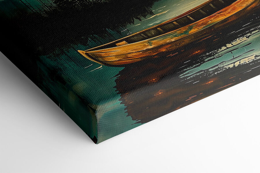 Transformați orice spațiu cu această imprimare încântătoare pe pânză cu o barcă senină plutind ușor pe ape liniștite, scăldată în strălucirea moale a lunii pline. Doar privirea invită la visarea cu ochii deschiși a nopților liniștite petrecute sub cerul înstelat. Imaginați-vă seri confortabile, poate sorbind ceai sau pierzându-vă într-o carte, cu această scenă captivantă care vă acoperă peretele. Amestecul său de culori aduce atât calm, cât și o notă de mister, ceea ce o face un subiect de conversație perfect. Este o artă care șoptește povești și stârnește dorința de călătorie – cine nu și-ar dori o astfel de magie acasă?