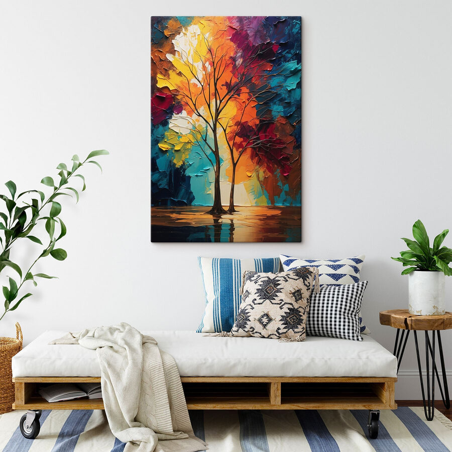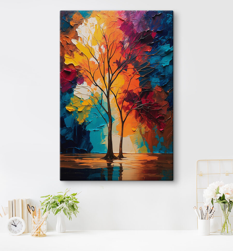 Ați intrat vreodată într-o cameră și v-ați simțit… wow? Exact asta face această imprimare pe pânză – este ca și cum ar turna o explozie de bucurie direct în spațiul tău. Culorile îndrăznețe și copacii grațioși aduc cu ușurință un amestec de liniște și emoție în orice cameră. Imaginați-vă că vă treziți, vă turnați o ceașcă de cafea și vedeți această operă de artă plină de viață salutându-vă în fiecare dimineață. Este ca și cum natura a decis să se prăbușească prin perete în cel mai bun mod posibil! Perfectă pentru toți cei care iubesc o notă de sălbăticie în decorul lor, această operă de artă vă învăluie camera într-o îmbrățișare de căldură și vibrație. Îmbinând fără efort arta plastică, natura și un strop de pop, această piesă va deveni inima spațiului tău. Așa că, dați-i drumul, lăsați-o să împrăștie puțină magie pe pereții dvs.!
