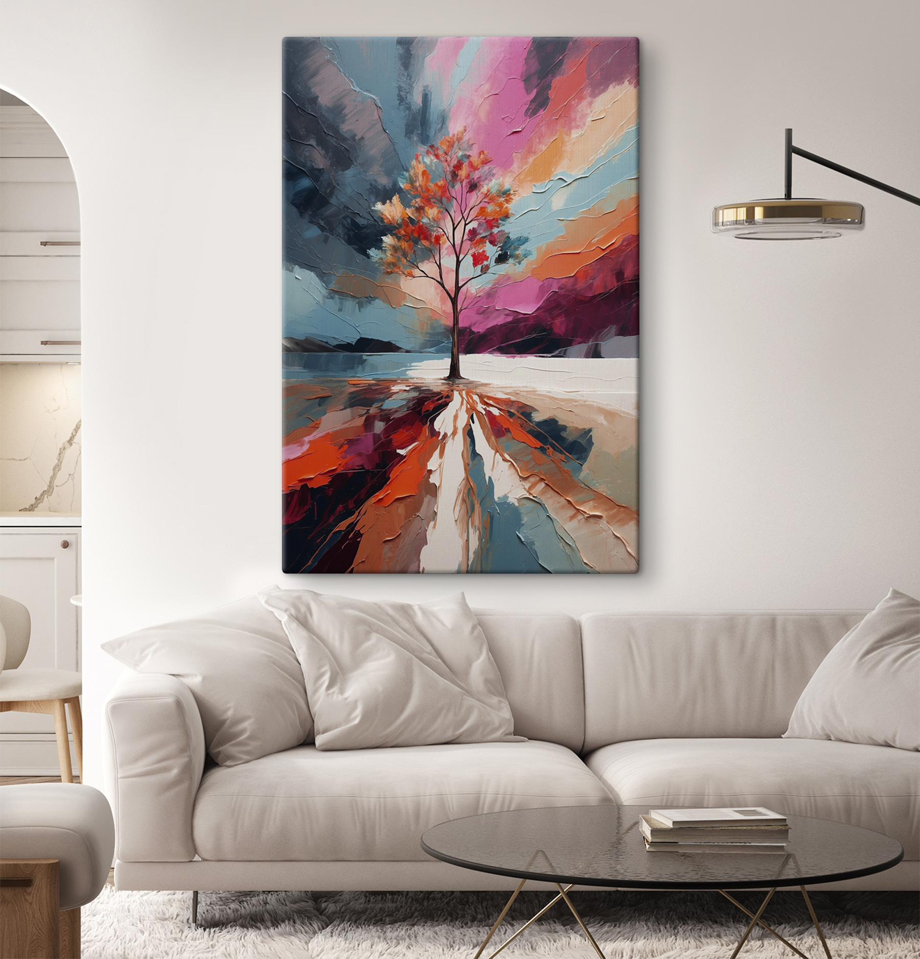 Căutați să adăugați un strop de culoare și o notă de natură spațiului dvs.? “Printuri pe pânză s40461” s-ar putea să fie soluția perfectă! Această piesă uimitoare din categoriile Fine Art Canvas Art, Nature Canvas Art și Popular Canvas Art prezintă un copac care pare să danseze cu cerul – îmbrăcat în roz vibrant, portocaliu și albastru intens. Imaginați-vă: stresul cotidian se topește pe măsură ce vă pierdeți în tușele sale de vis… simțindu-vă ca și cum ați păși într-o altă lume. Perfect pentru acele zile în care aveți nevoie de o mică evadare fără să plecați de acasă. Agățați-o în sufragerie, în dormitor sau chiar la birou – priviți cum aduce camera la viață fără efort cu stropii săi de fantezie și culoare. Un starter de conversație? Categoric!