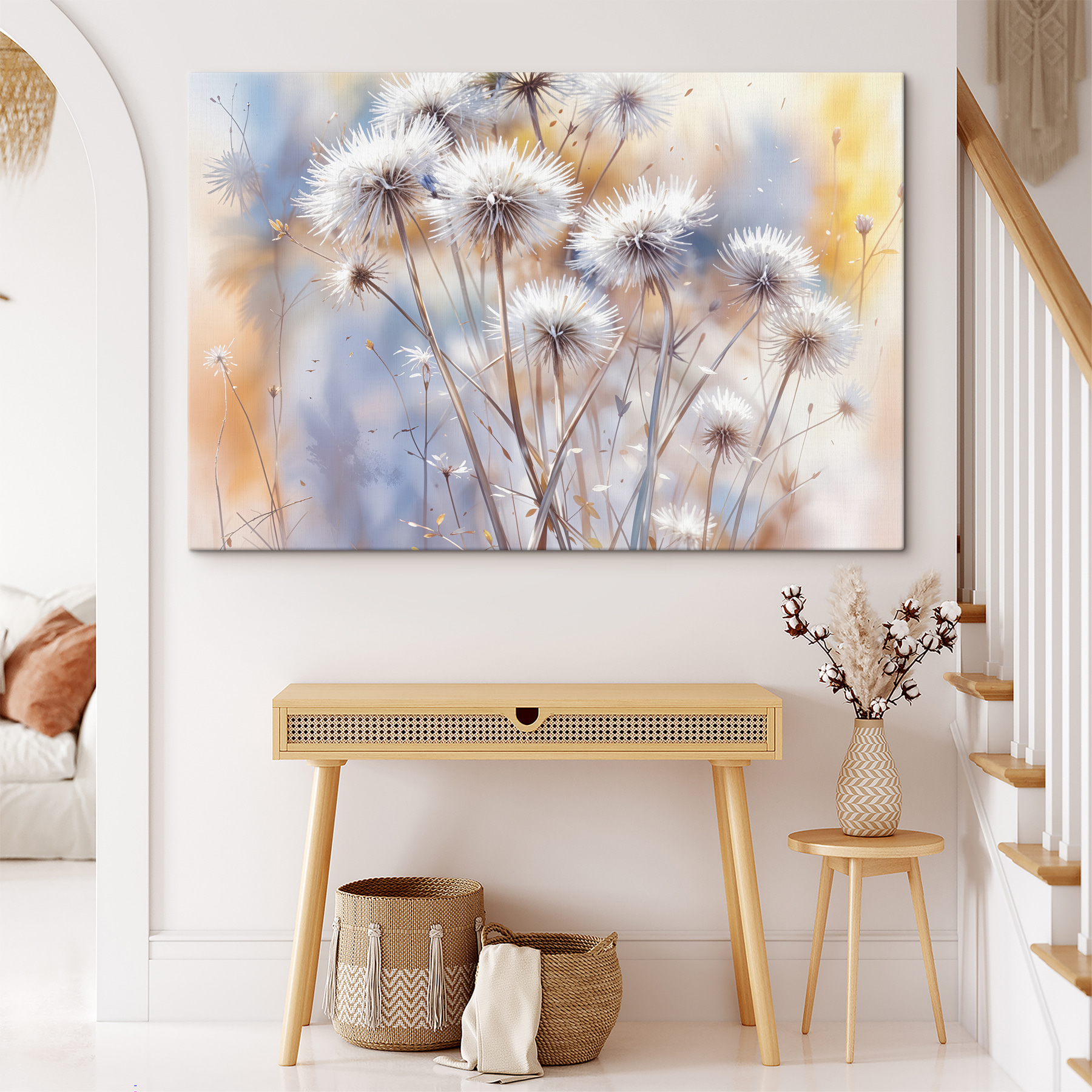 Înveseliți orice cameră cu această imprimare uimitoare pe pânză care prezintă un grup încântător de flori albe. Perfectă pentru a adăuga o notă de frumusețe naturală spațiului dvs., aceasta aduce un sentiment de calm și seninătate. Imaginați-vă intrând într-o cameră și fiind întâmpinați de eleganța blândă a acestor flori. Ele vor stârni o conversație fantastică, poate chiar o poveste despre ultima ta aventură în grădină. Culorile suave creează un fundal perfect pentru relaxare sau o întâlnire confortabilă. Este ca și cum ai aduce o bucățică de aer liber în interior, fără riscul de a uda – cine are nevoie de asta?
