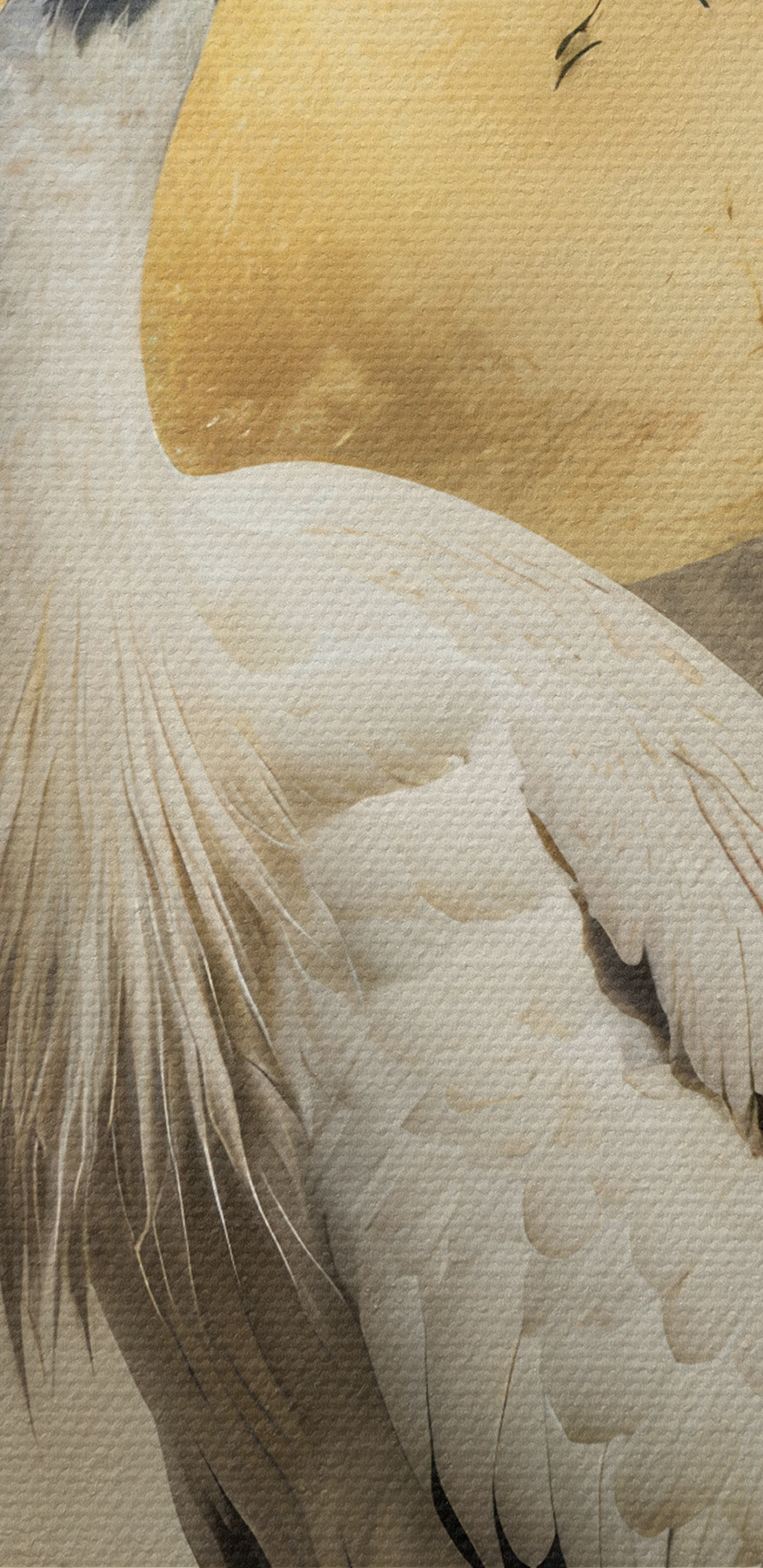 Imaginați-vă acest lucru: o pasăre, echilibrată și elegantă, stă în fața unei luni pline strălucitoare, vrăjind pe oricine intră în cameră. Acest print pe pânză nu este doar artă; este o stare de spirit. Perfectă pentru cei care au o pasiune pentru natură și o slăbiciune pentru animale – sau poate doar o dragoste pentru subiecte de conversație ciudate. Imaginați-vă că vă turnați o ceașcă de ceai, vă așezați într-un fotoliu confortabil și vă lăsați purtați sub cerul liniștit luminat de lună. Simțiți chiar că pasărea s-ar putea întoarce brusc și să vă împărtășească secretele sale de la miezul nopții. O atmosferă unică pentru peretele tău, cu un strop de mirare visătoare.