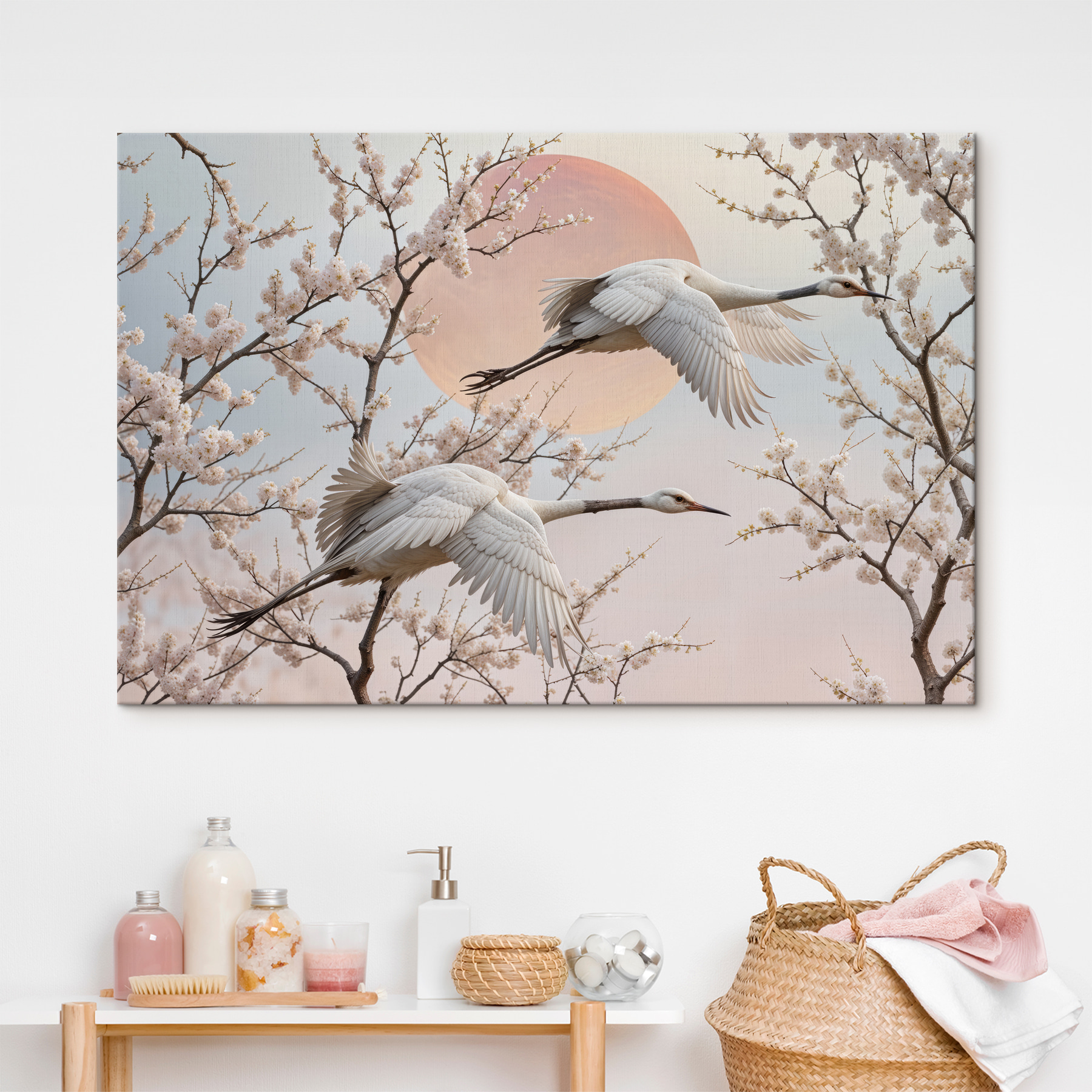 Imaginați-vă acest lucru: sorbiți un ceai și chiar acolo, pe perete, se află această imprimare uimitoare pe pânză a unor păsări în plin zbor. Este ca și cum ai pune pauză pe un moment perfect – acele aripi elegante care străbat cerul, florile de cireș încadrându-le călătoria. Aproape că poți simți briza? Acest print aparține unui spațiu senin, poate unde vă relaxați sau citiți o carte. Șoptește calm și libertate, invitând la visarea cu ochii deschiși a plutirii printre nori moi. Cu adevărat, este ca o mică gură de aer proaspăt pentru casa ta.