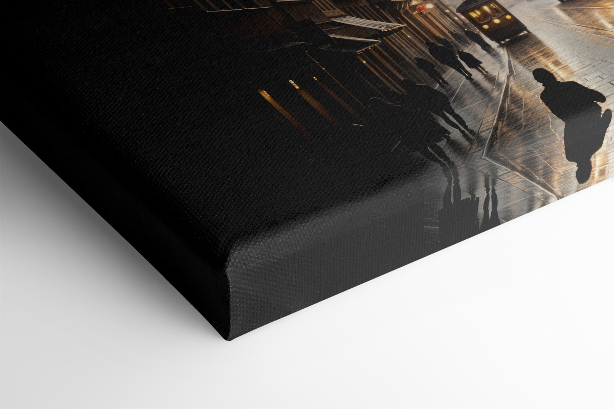 Ați simțit vreodată că o stradă poate spune povești? Această pânză cu siguranță o face! O scenă fermecătoare în care pavelele sărută lumina dimineții, iar un tren ciudat trece pe lângă ele. Este ca și cum ai păși într-un roman de epocă, unde timpul se scurge ușor și totul este un pic magic. Perfect pentru acel colțișor confortabil sau pentru peretele camerei de zi care are nevoie de un strop de farmec din lumea veche. S-ar putea să visați cu ochii deschiși că vă plimbați pe aceste străzi pitorești, cu cafeaua în mână, absorbind zumzetul liniștit al orașului. Este ca o mini evadare – chiar în casa ta!