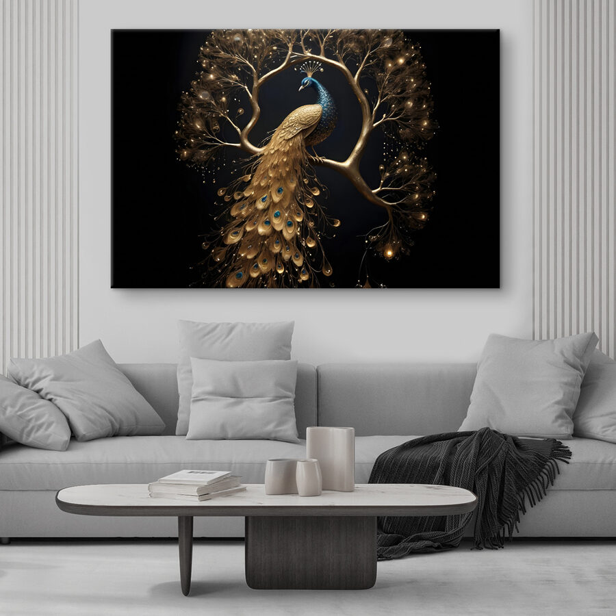 Imaginați-vă acest lucru: un păun care se relaxează în poala îmbrățișării elegante a naturii – o priveliște deosebită, nu-i așa? Cu toate aceste pene splendide și o notă de mister, este ca și cum ai păși într-o grădină secretă, unde eleganța și farmecul și-au stabilit tabăra. Perfect pentru a adăuga un strop de drama naturii în orice cameră. Prietenii s-ar putea să intre și să rămână mai mult, fermecați de alura sa grațioasă. Este ca o capodoperă a naturii – fără a mai fi nevoie de semințe pentru păsări. Perfect pentru a stârni conversații sau pur și simplu pentru a vă pierde în frumusețea sa complexă.