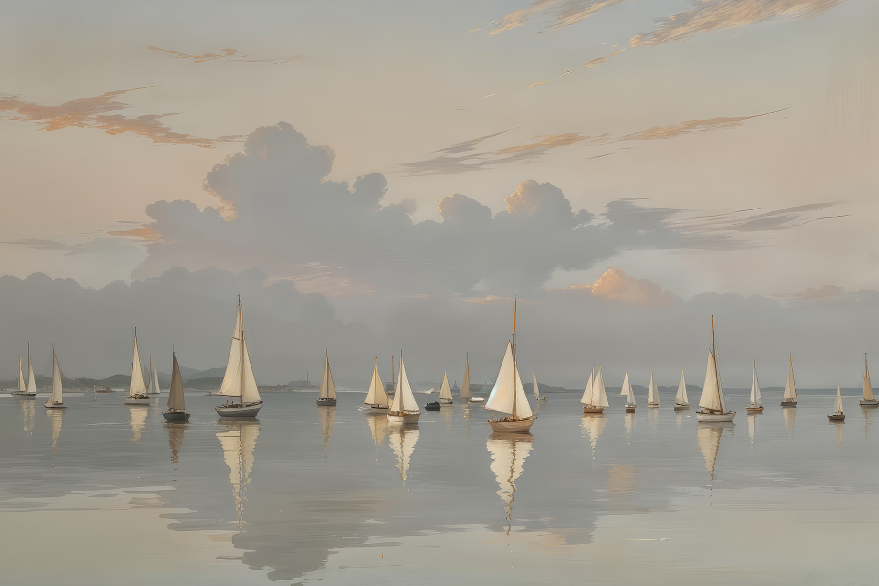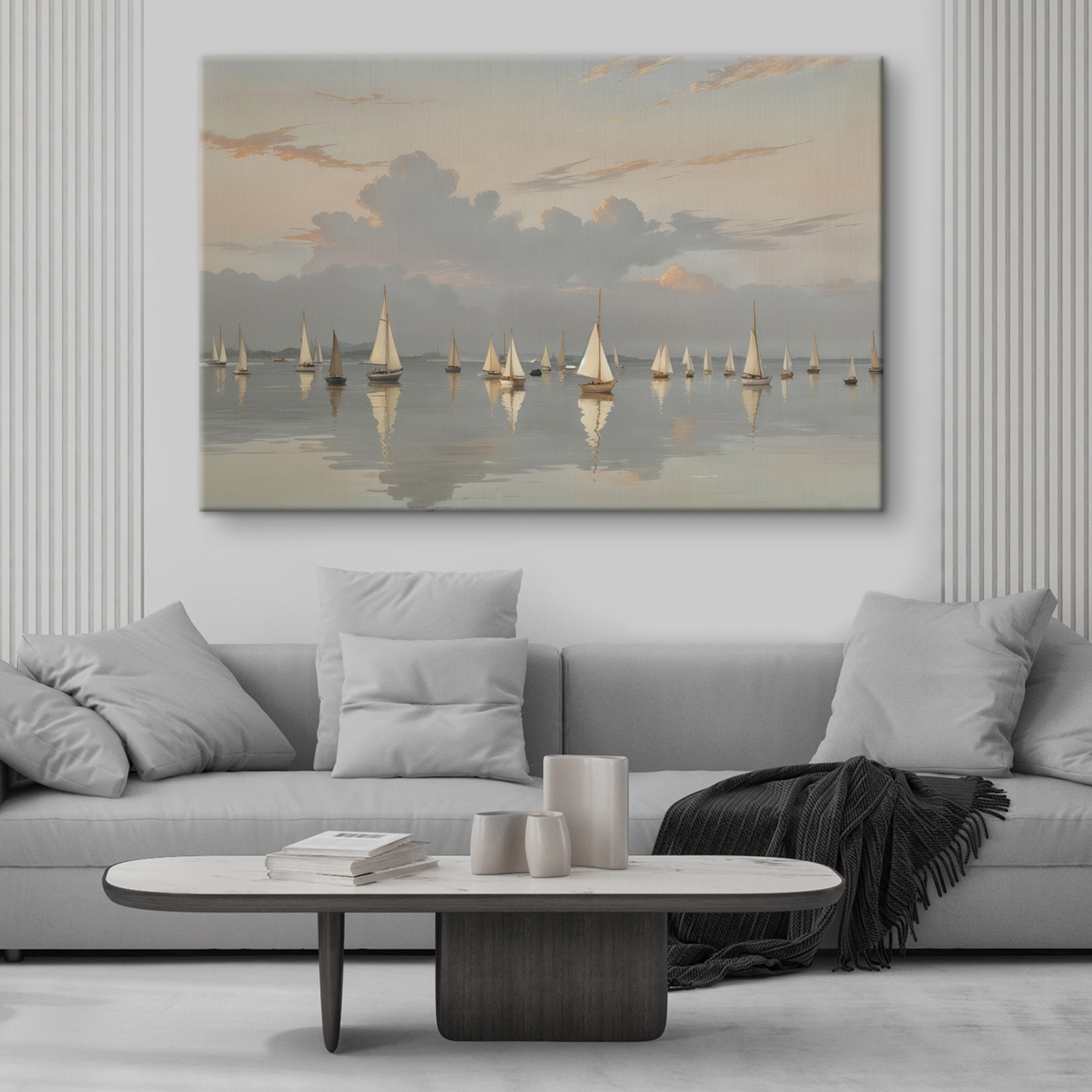 Imaginați-vă acest lucru: un grup de bărci cu pânze plutind leneș pe o mare senină, ca și cum mama natură ar fi apăsat pe butonul de somn. Această piesă de artă pe pânză surprinde perfect această vibrație visătoare. Nuanțele suave ale cerului se îmbină cu apa liniștită, făcând-o să miroasă aproape a briză marină și a aventură. Perfectă pentru cei care visează cu ochii deschiși sau pentru oricine a tânjit vreodată după o evadare. Agățați-o în camera de zi sau în birou și, dintr-o dată, este ca și cum pereții dvs. au propria lor escapadă secretă, unde singura grabă este în vânt. Nu e rău, nu-i așa?