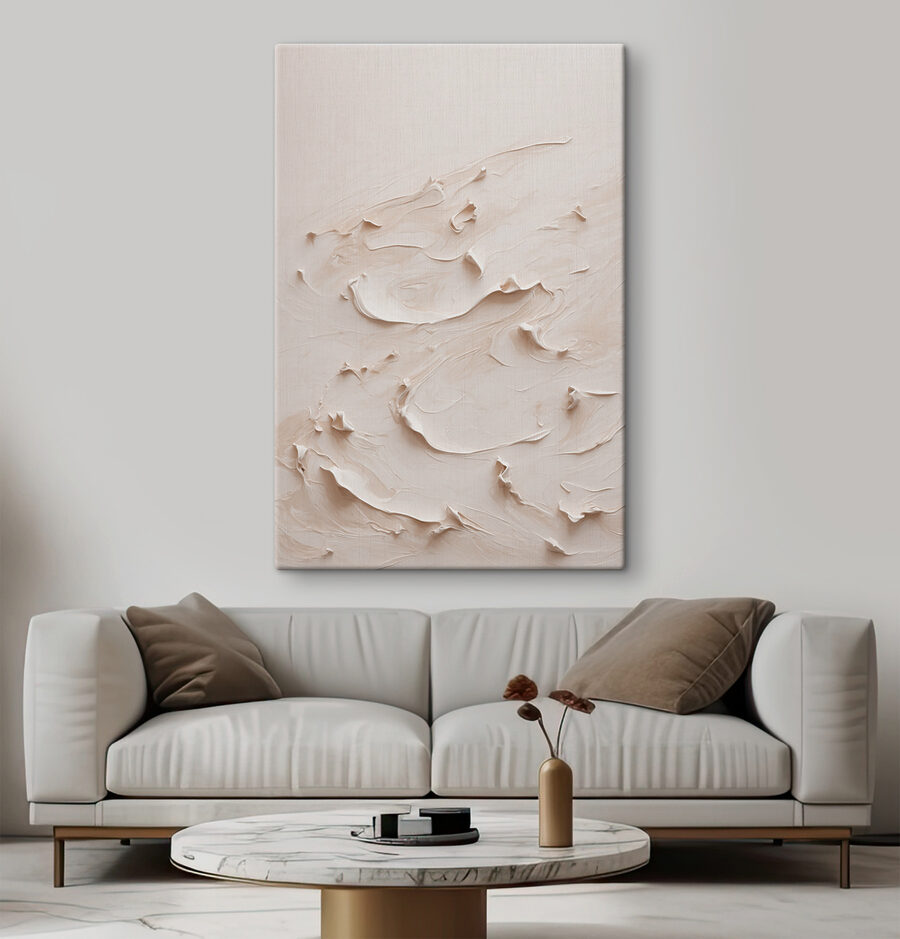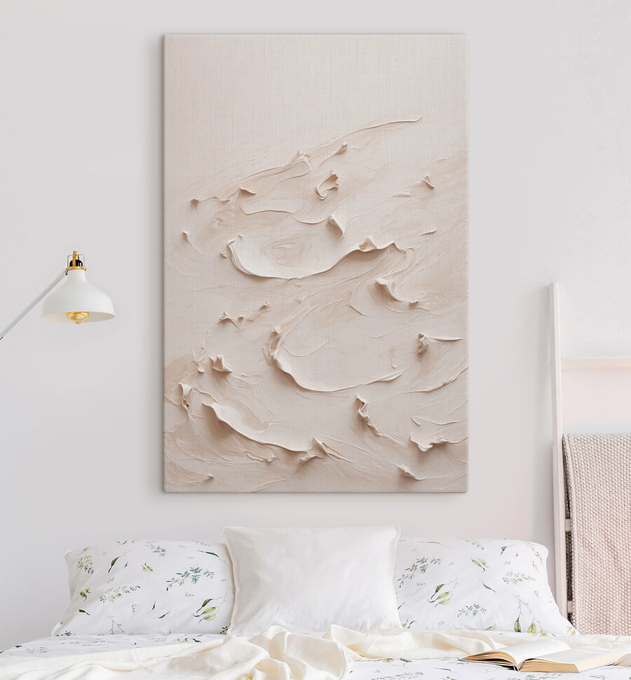 Denumit “Vârtejuri cremoase în flux artistic”, acest print pe pânză se simte ca o briză blândă care trece prin sufrageria dvs. Imaginați-vă că stați cu o ceașcă de ceai, lăsându-vă gândurile să rătăcească prin aceste vârtejuri lăptoase hipnotizante. Există ceva aproape muzical în felul în care fiecare curbă curge în următoarea – ca un vals elegant capturat în formă de artă. Perfect pentru cei care adoră arta plastică cu un strop de fantezie. Este genul de piesă care îi face pe oaspeți să se oprească și să spună: “Wow, spune-mi despre asta!”