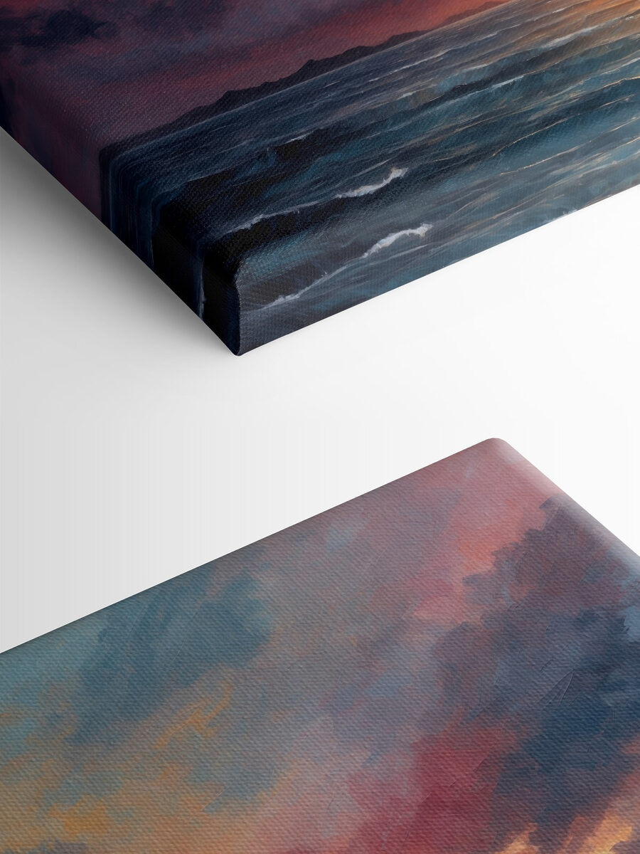 Ați simțit vreodată nevoia să aduceți o notă de drama naturii în interior? Această pânză “Apus de soare peste ocean” ar putea fi soluția potrivită. Imaginați-vă cum aceste nuanțe vibrante luminează o cameră, aproape ca și cum soarele însuși ar decide să apună în sufrageria dumneavoastră. Îndrăzneț, dar liniștitor – un pic ca și cum ai sorbi o băutură confortabilă în timp ce valurile șoptesc. Este o atingere de artă fină care va face ca orice spațiu să se simtă viu. Perfect pentru a stârni imaginația sau doar pentru a aduce un zâmbet; este apusul de soare pe care îl puteți privi oricând, fără nisip.