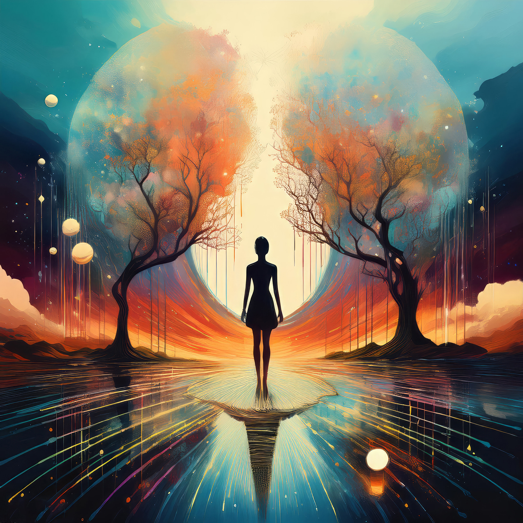 Imaginați-vă acest lucru: o seară senină, cu luna aruncându-și strălucirea blândă. Asta este ceea ce prinde viață în această imprimare pe pânză. O femeie stă grațios pe o suprafață reflectorizantă, încadrată de copaci vibranți și o lună măreață. Nu este doar artă – este o stare de spirit, un vibe. Afișați unul dintre aceste tablouri în camera dvs. și dintr-o dată vă veți afla în altă parte, unde natura vă șoptește secrete. Simțiți calmul? În plus, este un început de conversație pe cinste. Prietenii vor întreba: “Unde ai găsit această piesă de vis?” Și cui nu-i place un mic mister artistic?