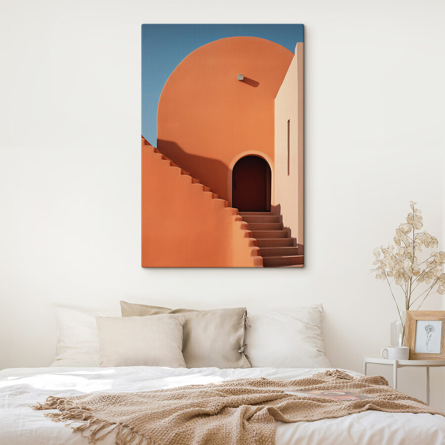 Această imprimare pe pânză, “Scară care duce la o clădire”, îi gâdilă deopotrivă pe minimaliști și pe iubitorii de arhitectură. Imaginați-vă-o pe perete – un amestec simplu, dar izbitor de geometrie și umbră. Nuanța portocalie încălzește încăperea, ca un apus de soare care nu se termină niciodată. Pentru cei care apreciază șoaptele liniștite ale vieții, această piesă este o amintire blândă a frumuseții în viața de zi cu zi. Perfectă pentru a stârni conversații sau doar pentru a vă bucura de un moment de calm. Este ca o mică evadare, chiar în sufrageria dvs. Cine ar fi crezut că scările pot fi atât de poetice?