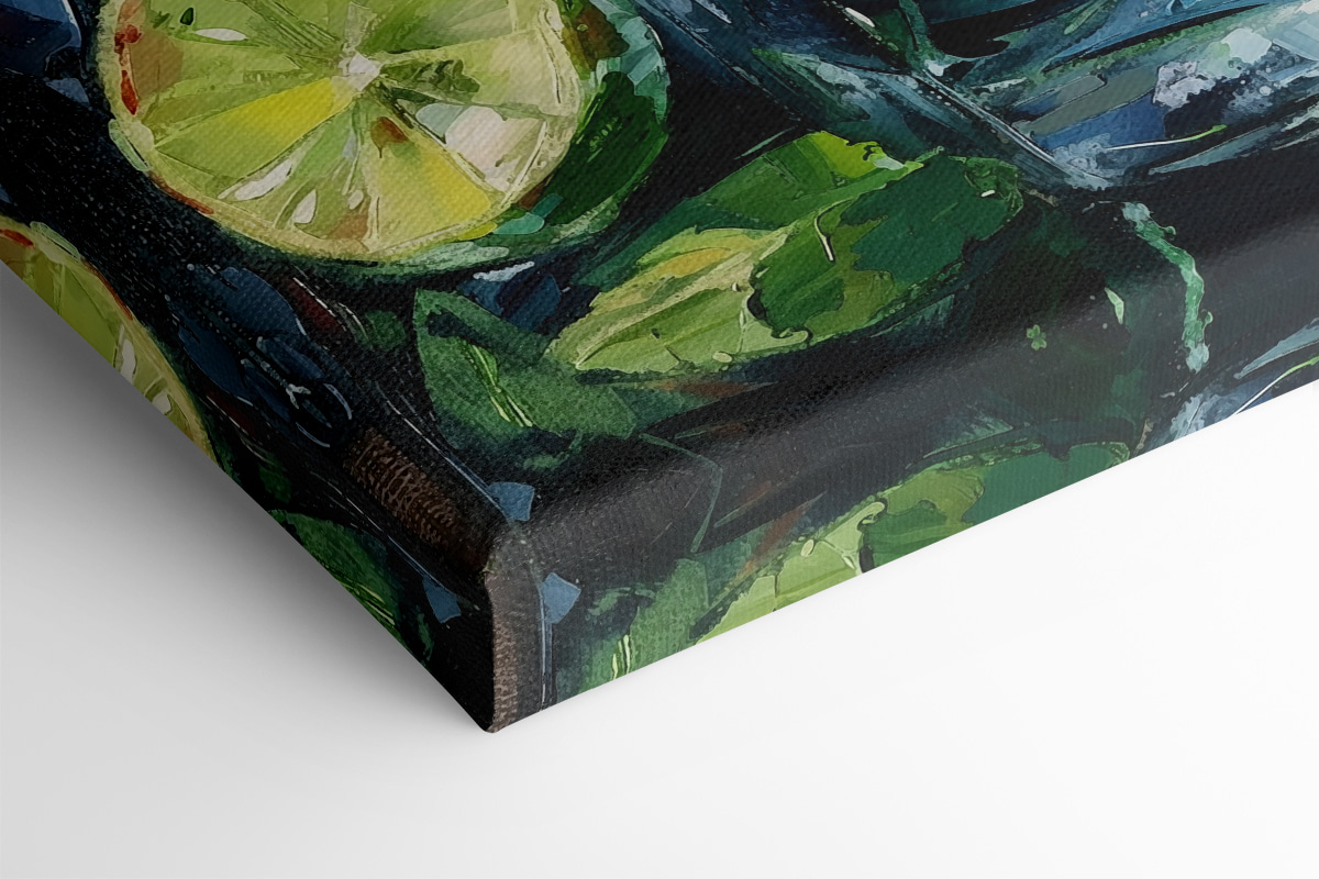 V-ați dorit vreodată să vă simțiți ca și cum ați sorbi un mojito într-o după-amiază leneșă de vară? Acest print pe pânză, “Glass of Ice and Limes” (Pahar cu gheață și lămâi verzi), aduce acea vibrație proaspătă și zemoasă chiar în sufrageria ta. Efectul de acuarelă dansează cu nuanțe de verde, aproape ca și cum lămâile ar avea propria lor mică petrecere. Perfect pentru o bucătărie sau o zonă de luat masa, este un starter de conversație încântător. Imaginați-vă: prieteni la masă, băuturi în mână, iar această lucrare le amintește tuturor de zilele însorite. Adăugați niște jazz antrenant și voila! Ambianță instantanee.