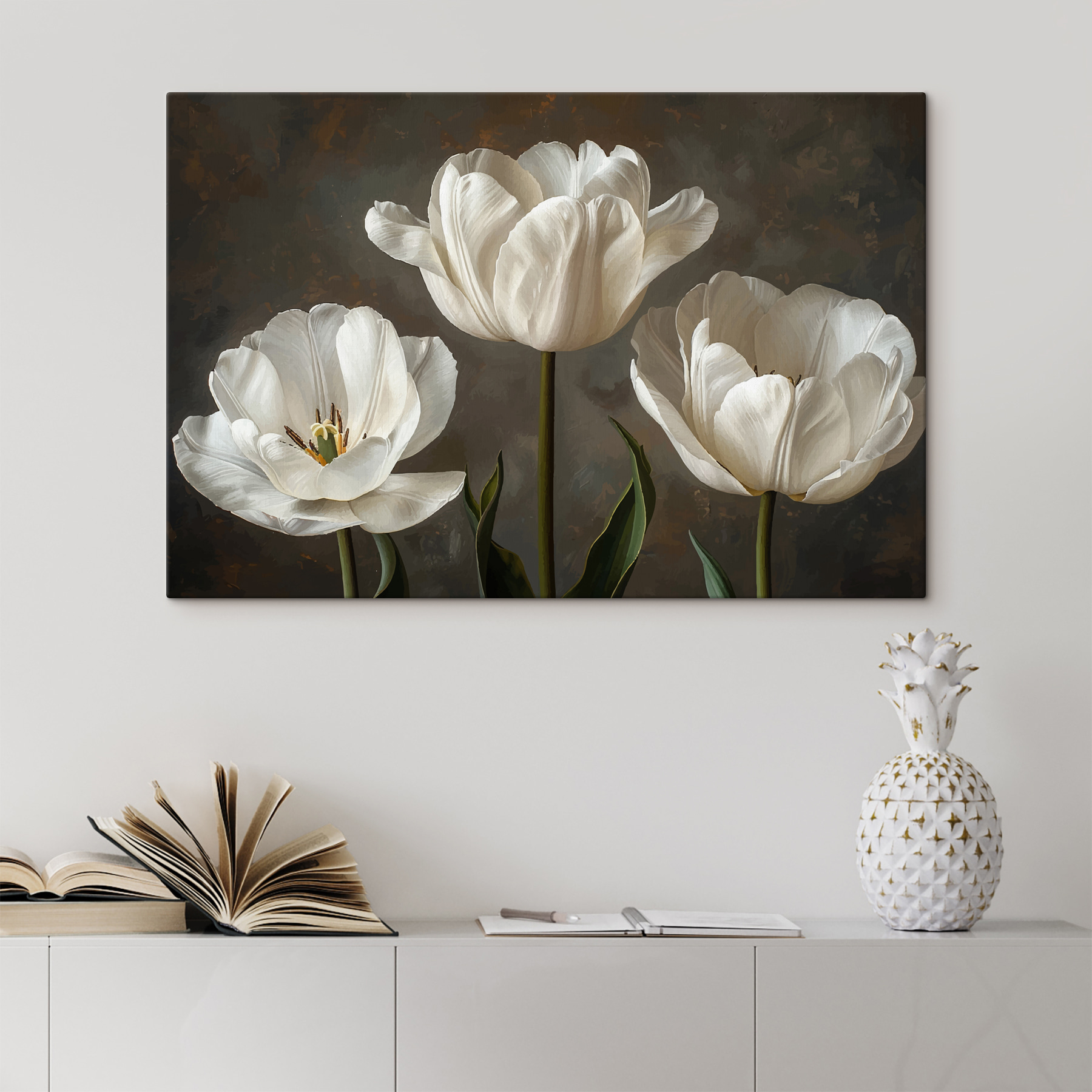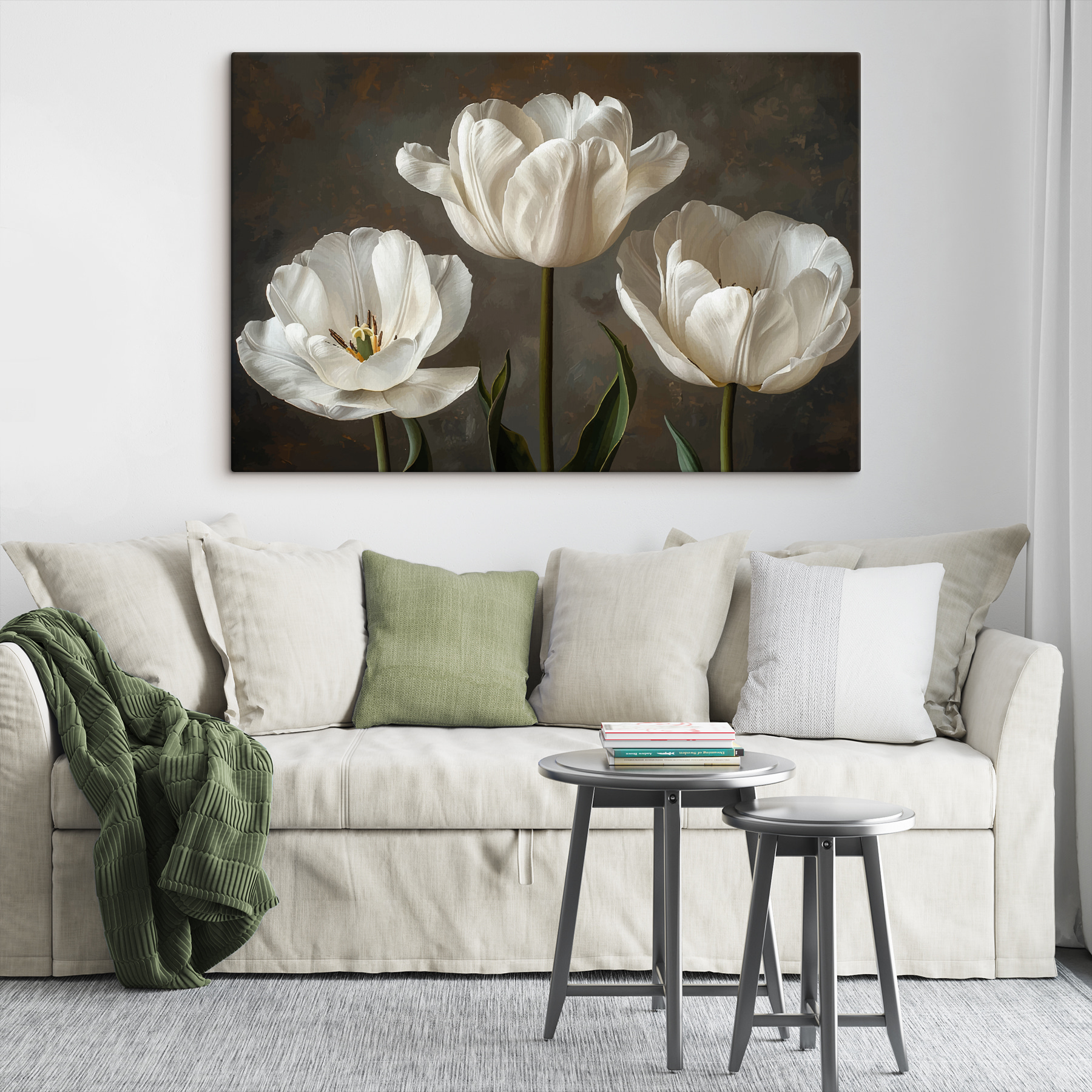 Imaginați-vă că intrați într-o cameră și vă simțiți ca într-o grădină liniștită – destul de cool, nu? Acest print pe pânză, cu un grup de flori albe elegante, face exact asta. Nu este doar artă; este o șoaptă blândă a naturii chiar pe peretele tău. Perfect pentru acele zile mohorâte în care ai nevoie doar de o gură de aer proaspăt, fără plante (nu necesită udare!). Fie într-un colțișor confortabil sau într-un living plin de viață, aceste flori înfloresc cu farmec și liniște, făcând spațiul tău instantaneu mai luminos.