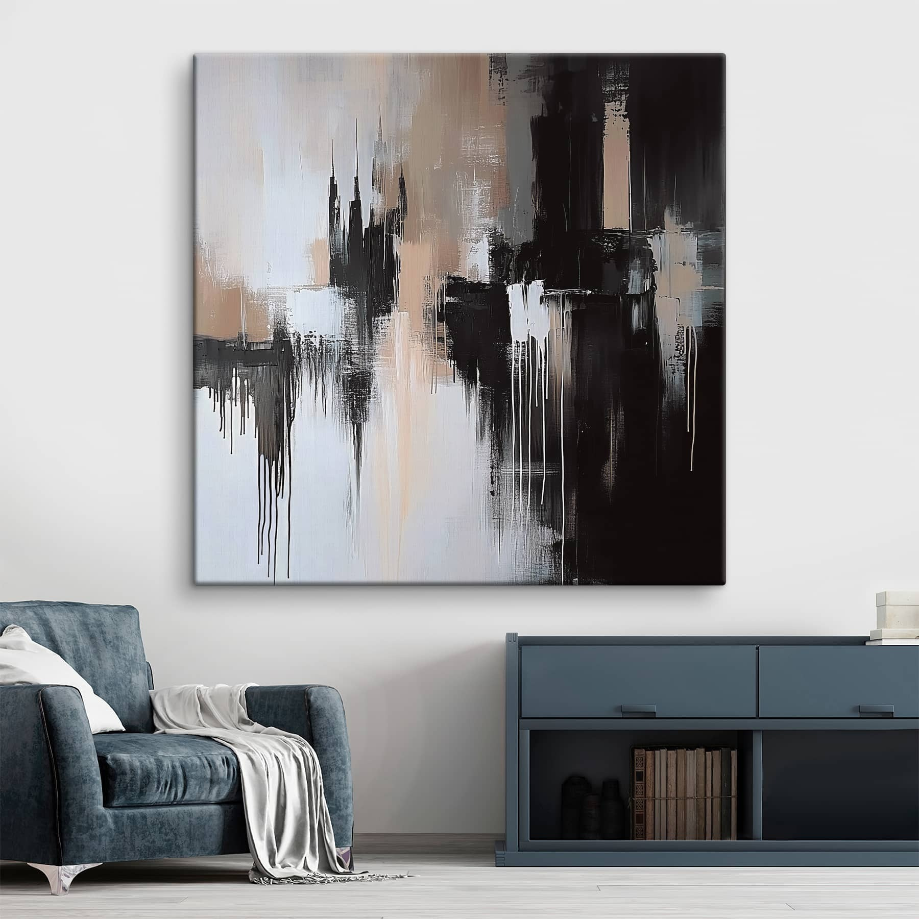 Vă prezentăm “Tablouri Black and White Painting” – un strop încântător de intrigă pentru orice spațiu. Această piesă îmbină fără efort eleganța și modernitatea cu liniile sale elegante și îndrăznețe și picăturile subtile. Imaginați-vă că intrați într-o cameră în care este atârnată această lucrare de artă, care vă atrage instantaneu ca o cafenea confortabilă într-o zi ploioasă. Amestecul de negru, alb și tonuri moi adaugă o notă caldă fără a fi prea autoritar. Este perfectă pentru cei care doresc să inițieze o conversație sau doar o vibrație calmantă după o zi agitată. Această pânză șoptește rafinament, ceea ce o face un fundal ideal pentru discuții sincere sau momente liniștite cu o carte. În plus, cine ar fi crezut că alb-negru poate fi atât de plin de viață? Dă pereților tăi puțină personalitate!