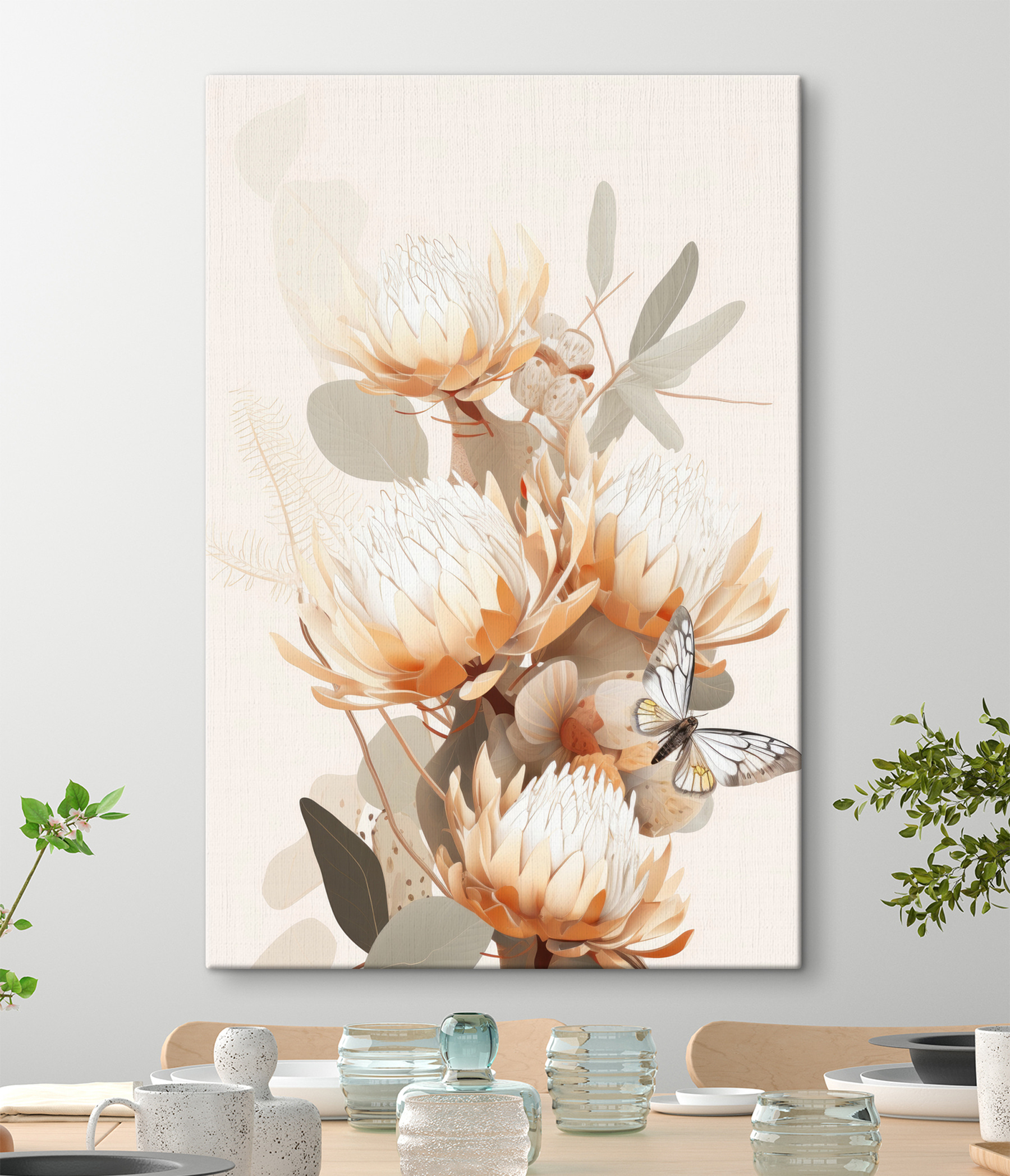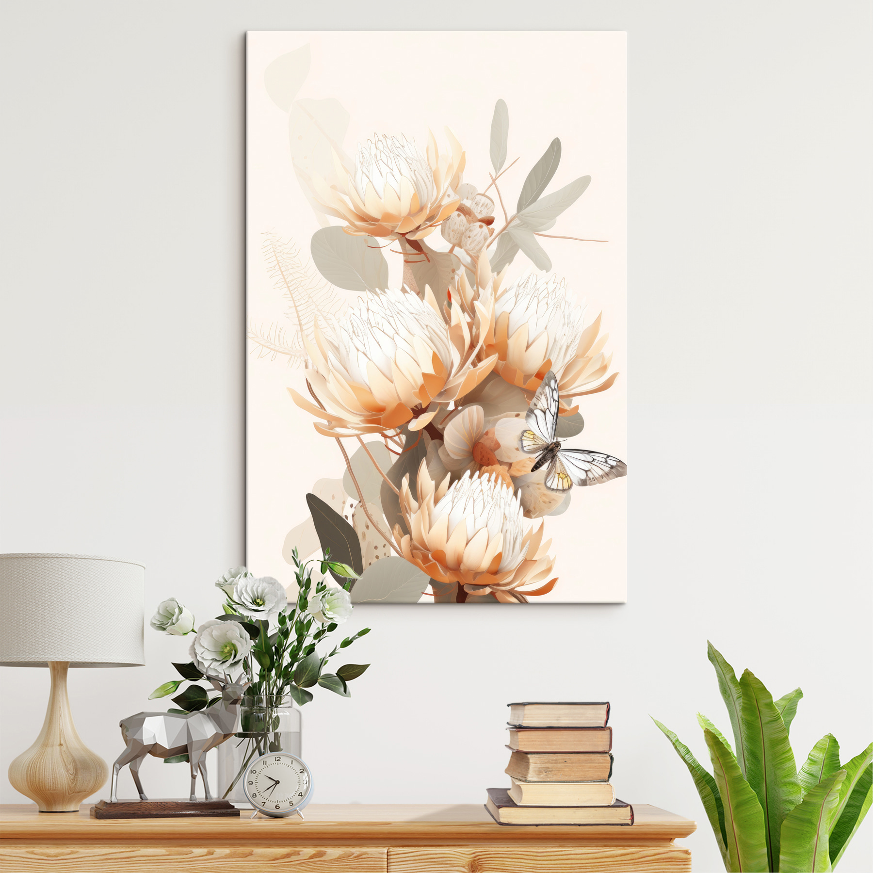 Imaginează-ți pereții împodobiți cu această încântătoare imprimare pe pânză “Fluture pe o floare” – este ca și cum ai aduce o grădină senină chiar în casa ta. Această piesă șoptește liniște, cu flori pastelate care adăpostesc un fluture delicat. Perfect pentru cei care prețuiesc momentele de natură infuzată de frumusețe. Gândiți-vă doar la asta: un companion liniștitor pentru cafeaua de dimineață, soarele aruncând o lumină blândă asupra acestei poezii vizuale. Este arta care vorbește inimii – nu este nevoie să udați! Lăsați spațiul dvs. să respire cu eleganță și farmec.
