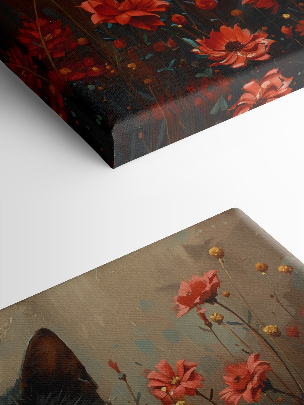 Această lucrare de artă are un vibe – o pisică neagră misterioasă cuibărită într-o mare de flori roșii îndrăznețe. Este ca o bucățică de încântare capturată pe pânză. Imaginează-ți-o atârnată pe peretele tău; ar putea deveni gardianul secret al spațiului tău. Acești ochi! Par să te urmărească, ca și cum pisica ți-ar păzi secretele sau doar s-ar întreba ce ai la cină.