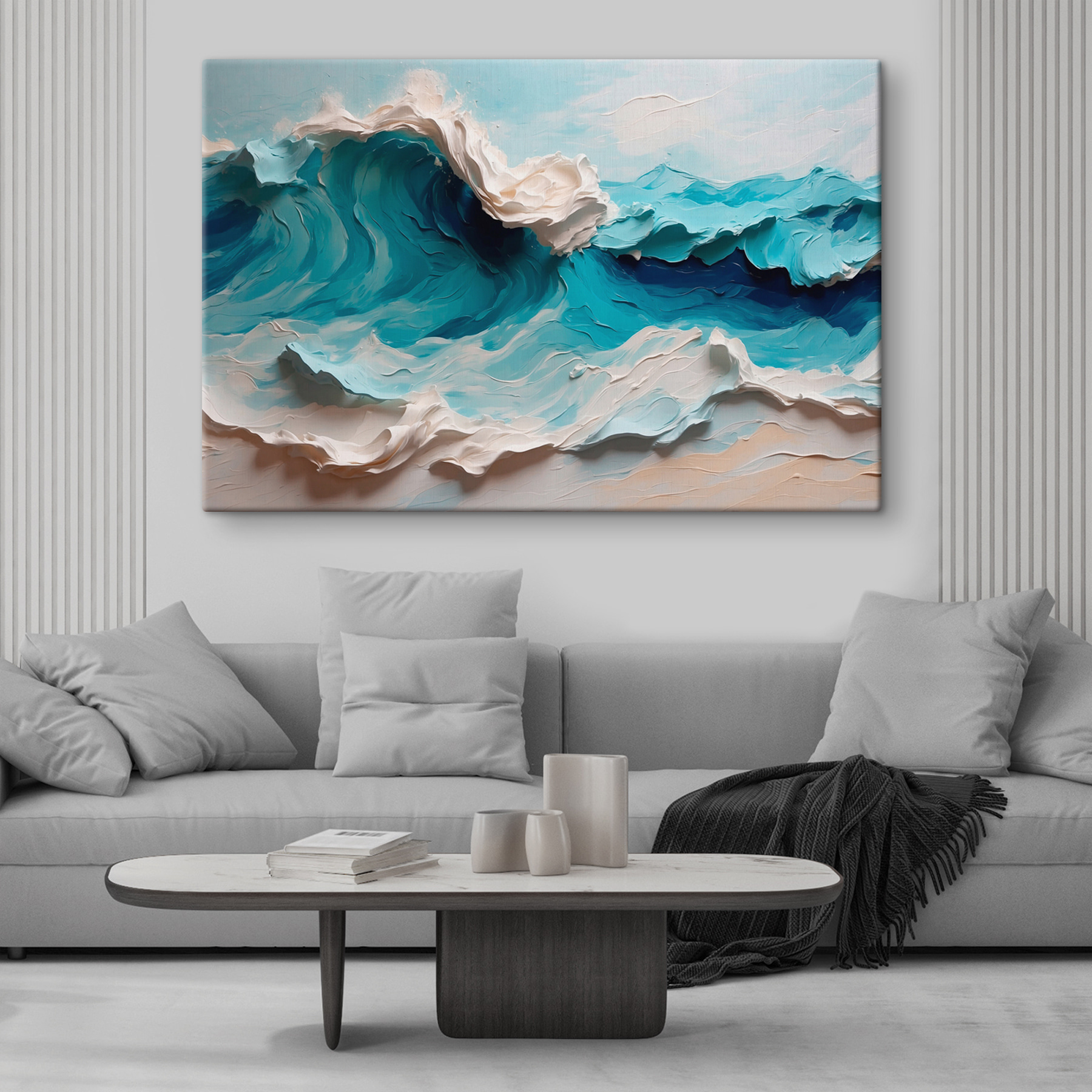 Scufundați-vă în haosul senin al “Tablouri pe pânză cu un val”! Știți sentimentul acela când briza oceanului șoptește libertate? Asta este ceea ce aduce această piesă. Albastrul vibrant și albul învolburat surprind sufletul mării – sălbatic, dar liniștitor. Este ca și cum ai avea oceanul chiar acolo, fără picioarele ude. Perfect pentru a aduce o notă de drama naturii în spațiul dvs. Imaginați-vă sorbind o cafea, privind valul care se unduiește pe peretele dvs. Nu este doar artă; este o evadare. Te face să vrei să faci surf, nu-i așa?