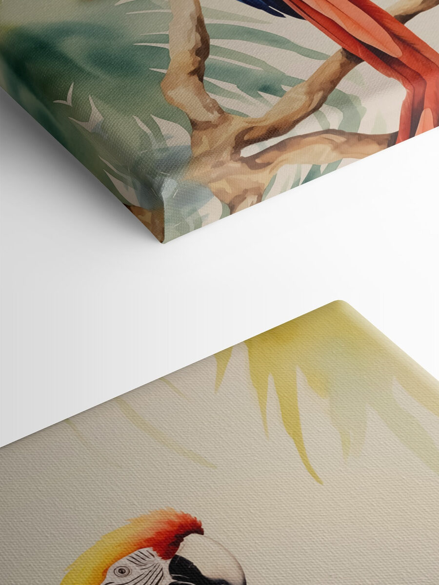 Imaginați-vă că intrați în sufragerie și sunteți întâmpinați de o explozie de pene vibrante – această pânză cu păsări colorate este ca o mini evadare tropicală chiar pe peretele dvs. Are acel amestec perfect de nuanțe vii și textură delicată de acuarelă. Adaugă o notă de fantezie și farmecul naturii în orice spațiu. Imaginați-vă sorbind cafeaua de dimineață, simțind aura veselă pe care o emană. O sursă sigură de conversație, această piesă nu vă decorează doar peretele, ci vă cântă la suflet.