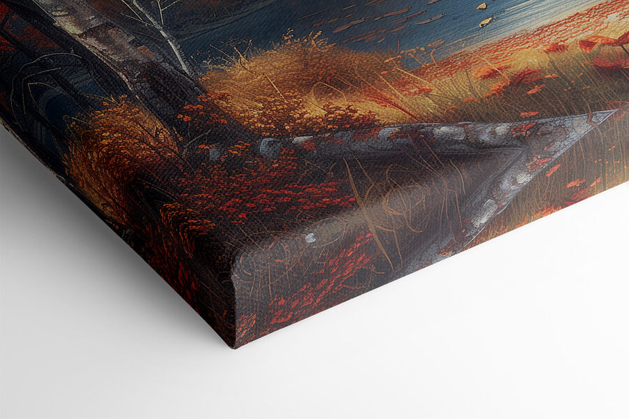 Imaginați-vă această imprimare uimitoare pe pânză care vă luminează spațiul, surprinzând un lac învăluit în îmbrățișarea caldă a frunzelor portocalii și a munților maiestuoși. Este ca și cum natura a decis să se afișeze puțin! Perfectă pentru acel perete care ar avea nevoie de puțină personalitate, această piesă aduce aerul liber înăuntru. Imaginați-vă sorbind cafea, pierzându-vă în culori sau visând cu ochii deschiși la o plimbare confortabilă prin pădurile de toamnă. Nu este doar decor; este o mică bucată de seninătate pentru casa ta. În plus, cine nu și-ar dori să înceapă o conversație despre un lac frumos?