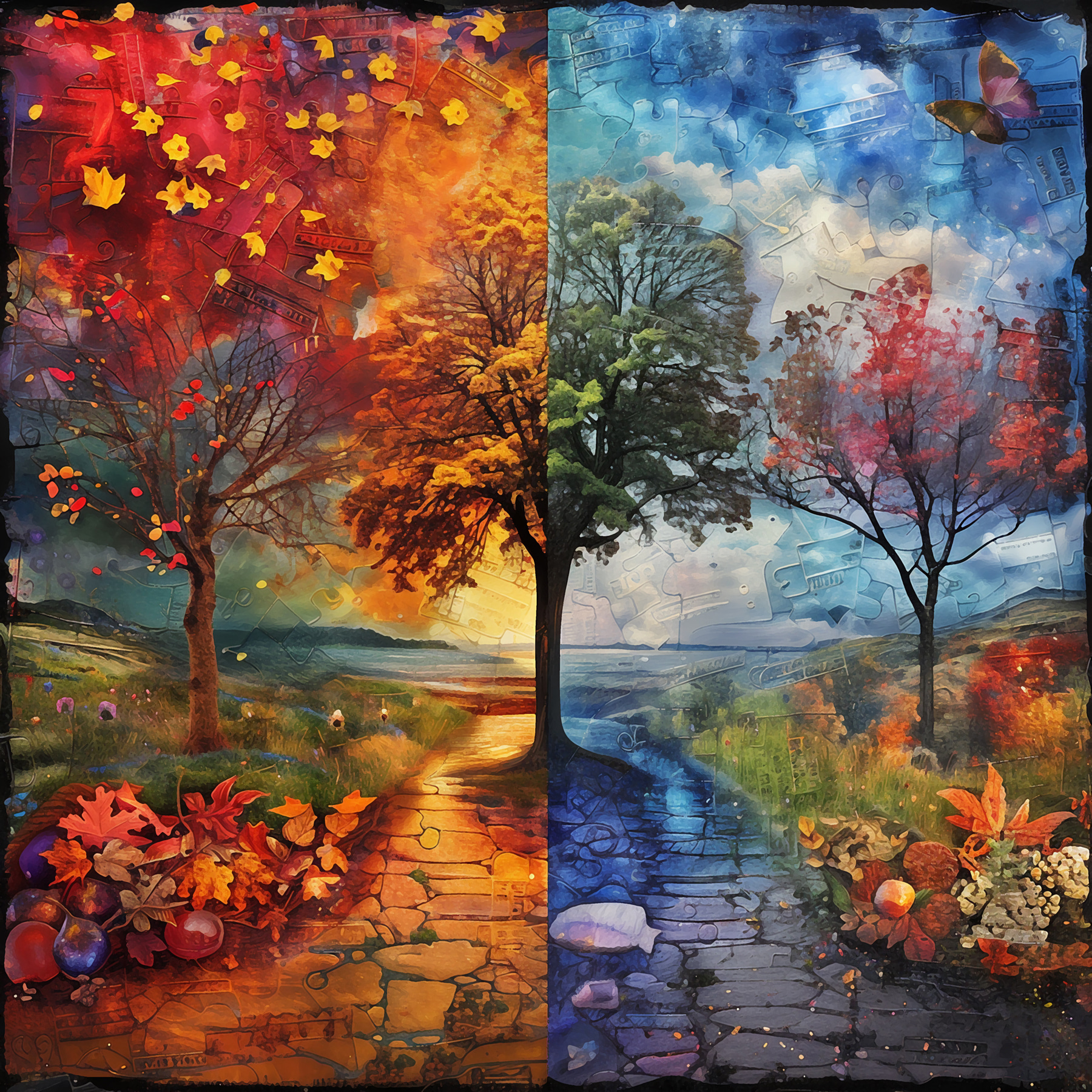 Transformați orice cameră cu această imprimare încântătoare pe pânză, cu un copac senin și o cărare sinuoasă. Este ca și cum ați păși într-un moment de pace, surprinzând frumusețea anotimpurilor schimbătoare ale naturii, toate într-o singură piesă uimitoare. Imaginați-vă că vă relaxați într-o după-amiază ploioasă, această operă de artă vibrantă aducând căldură și confort spațiului dumneavoastră. Culorile dansează cu portocale bogate în viață și albastru rece, invitându-vă imaginația să rătăcească. Fie că este o sursă de conversație sau doar un fundal încântător pentru viața de zi cu zi, această imprimare va stârni cu siguranță bucurie, un amestec perfect de farmec al naturii și fler artistic.