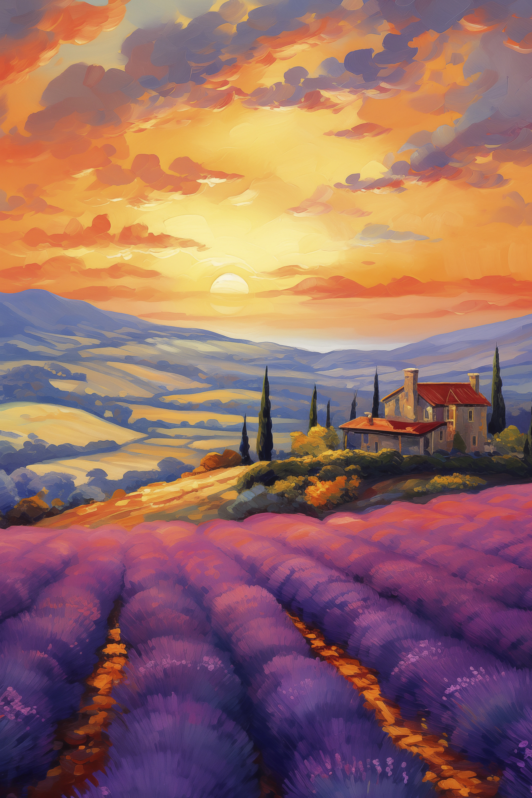 Transformați orice cameră cu acest minunat print pe pânză care prezintă o casă fermecătoare cocoțată pe un deal, înconjurată de câmpuri vibrante de lavandă. Imaginați-vă că veniți acasă după o zi lungă, vă așezați în fotoliul preferat și admirați această priveliște senină. Culorile calde de pe cer – gândiți-vă la apus de soare – creează o atmosferă primitoare care șoptește relaxare. Este perfectă pentru bucătării, dormitoare sau chiar un colț de lectură confortabil. Prietenii te vor întreba unde ai găsit o astfel de bijuterie, iar tu poți zâmbi, știind că ai adăugat o notă de frumusețe vieții de zi cu zi. Cine nu și-ar dori asta?
