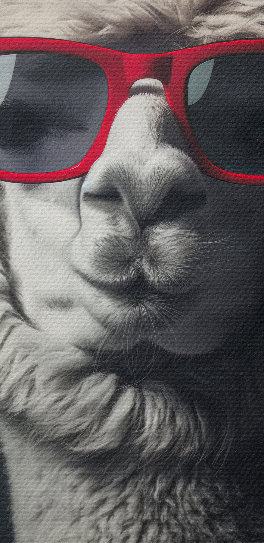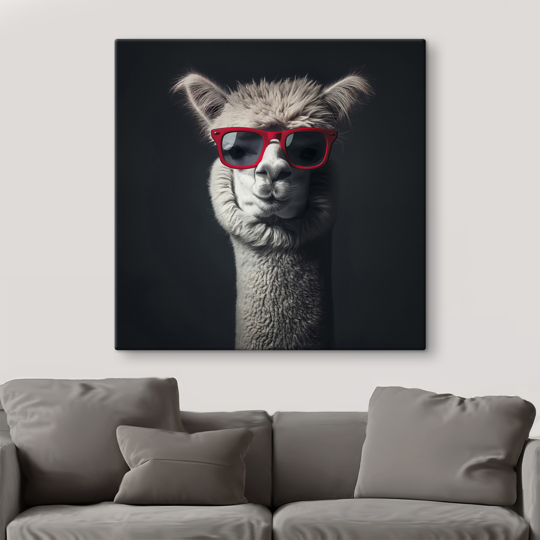Fă cunoștință cu noul tău subiect de conversație preferat: o lamă cool cu ochelari de soare roșii. Este combinația perfectă de farmec alb-negru cu un strop de distracție. Imaginați-vă acest tip obraznic atârnând în sufrageria dvs., adăugând un pic de fantezie și mister. Vibe-ul minimalist păstrează clasa, în timp ce ochelarii de soare? Carismă pură. Este ca și cum ai avea un prieten elegant care este prea cool pentru școală, dar în secret îi place să te facă să zâmbești. Perfect pentru iubitorii de animale și pentru oricine se bucură de un pic de umor în decorul său. Cine ar fi crezut că lama are gusturi atât de bune?