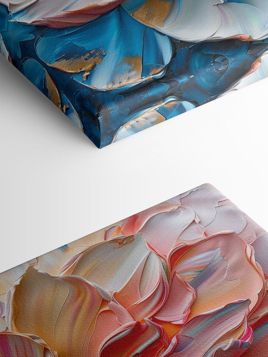 Aduceți un strop de fantezie pe pereții dvs. cu “Printurile pe pânză înfloresc în vârtejuri de vopsea pastel”. Această piesă uimitoare este ca și cum ai captura un apus de soare pe pânză – o explozie de culori care se învârt și dansează cu un abandon sălbatic și fericit. Imaginați-vă-o în sufrageria dvs. prinzând lumina după-amiezii, făcând totul să pară un pic mai melancolic și mai primitor. S-ar putea chiar să vă treziți inventând povești despre viața secretă a florii – visează la grădini sau la încăperi care strălucesc ușor? Un început de conversație încântător, care cu siguranță îți va răscoli sufletul.