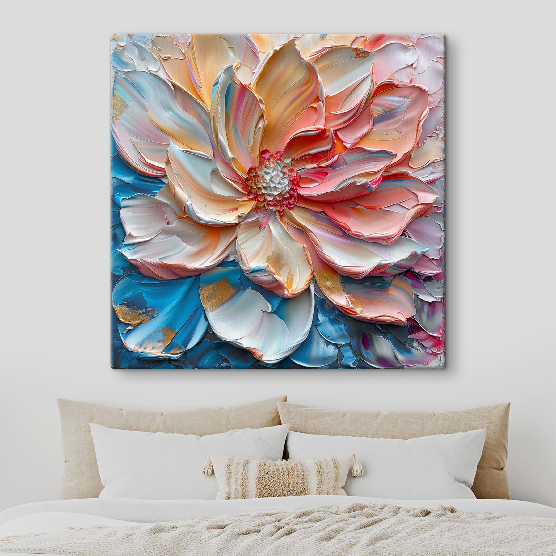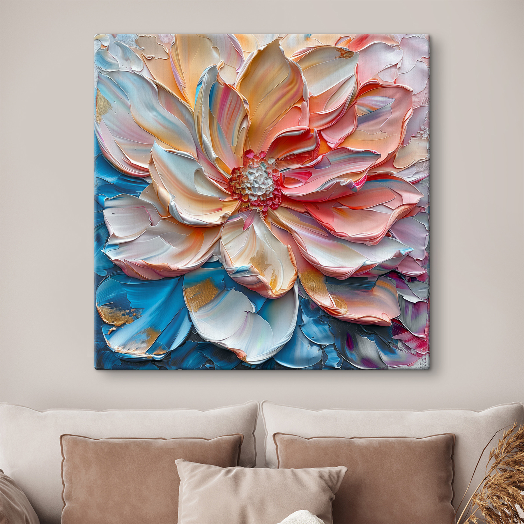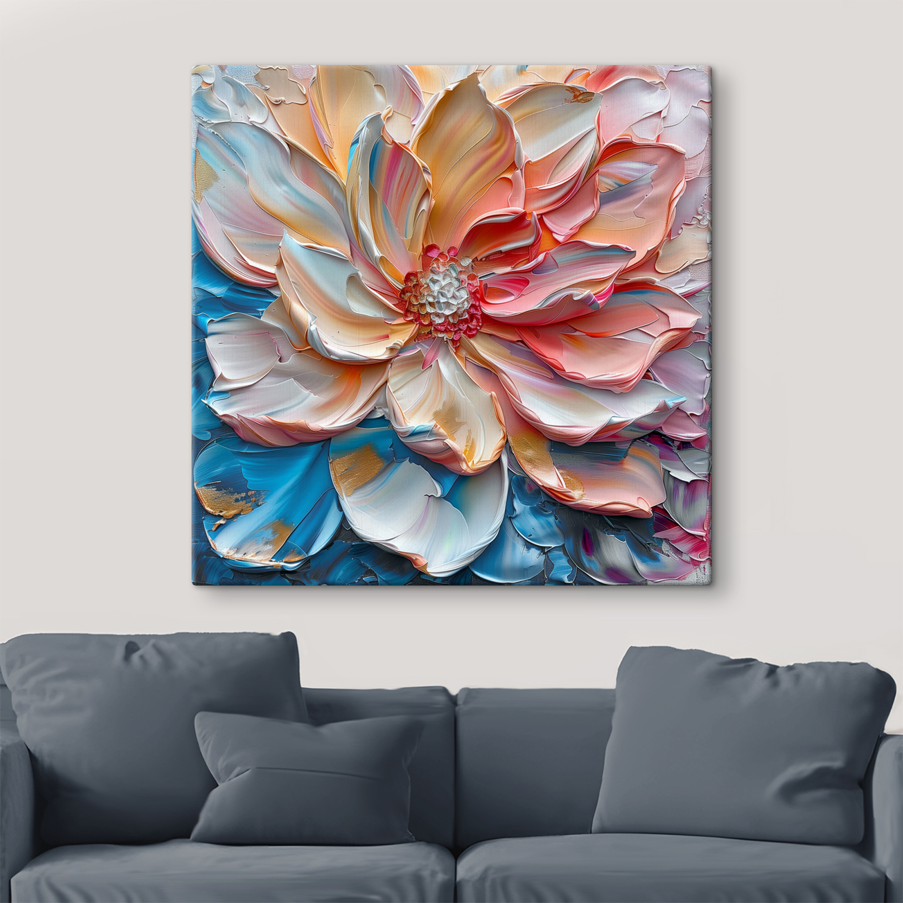 Aduceți un strop de fantezie pe pereții dvs. cu “Printurile pe pânză înfloresc în vârtejuri de vopsea pastel”. Această piesă uimitoare este ca și cum ai captura un apus de soare pe pânză – o explozie de culori care se învârt și dansează cu un abandon sălbatic și fericit. Imaginați-vă-o în sufrageria dvs. prinzând lumina după-amiezii, făcând totul să pară un pic mai melancolic și mai primitor. S-ar putea chiar să vă treziți inventând povești despre viața secretă a florii – visează la grădini sau la încăperi care strălucesc ușor? Un început de conversație încântător, care cu siguranță îți va răscoli sufletul.