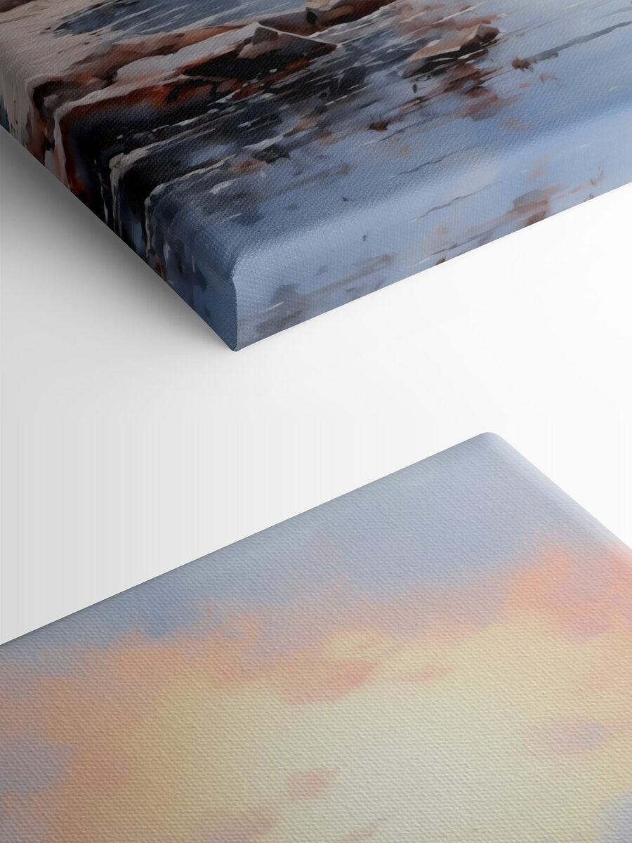Imaginați-vă o evadare senină de fiecare dată când intrați într-o cameră. Această pânză de artă prezintă o casă fermecătoare cocoțată pe un țărm stâncos, scăldată în strălucirea moale a unui cer pastel. Este ca și cum ai aduce o bucată de farmec de coastă chiar în casa ta – fără valuri care se sparg, doar vibrații calme. Imaginați-vă sorbindu-vă cafeaua de dimineață în timp ce priviți această scenă. Culorile sunt blânde, dar vibrante, făcând aluzie la frumusețea naturii. Este perfectă pentru oricine iubește o mică aventură fără să părăsească canapeaua. Agățați-o și lăsați să înceapă visatul cu ochii deschiși!