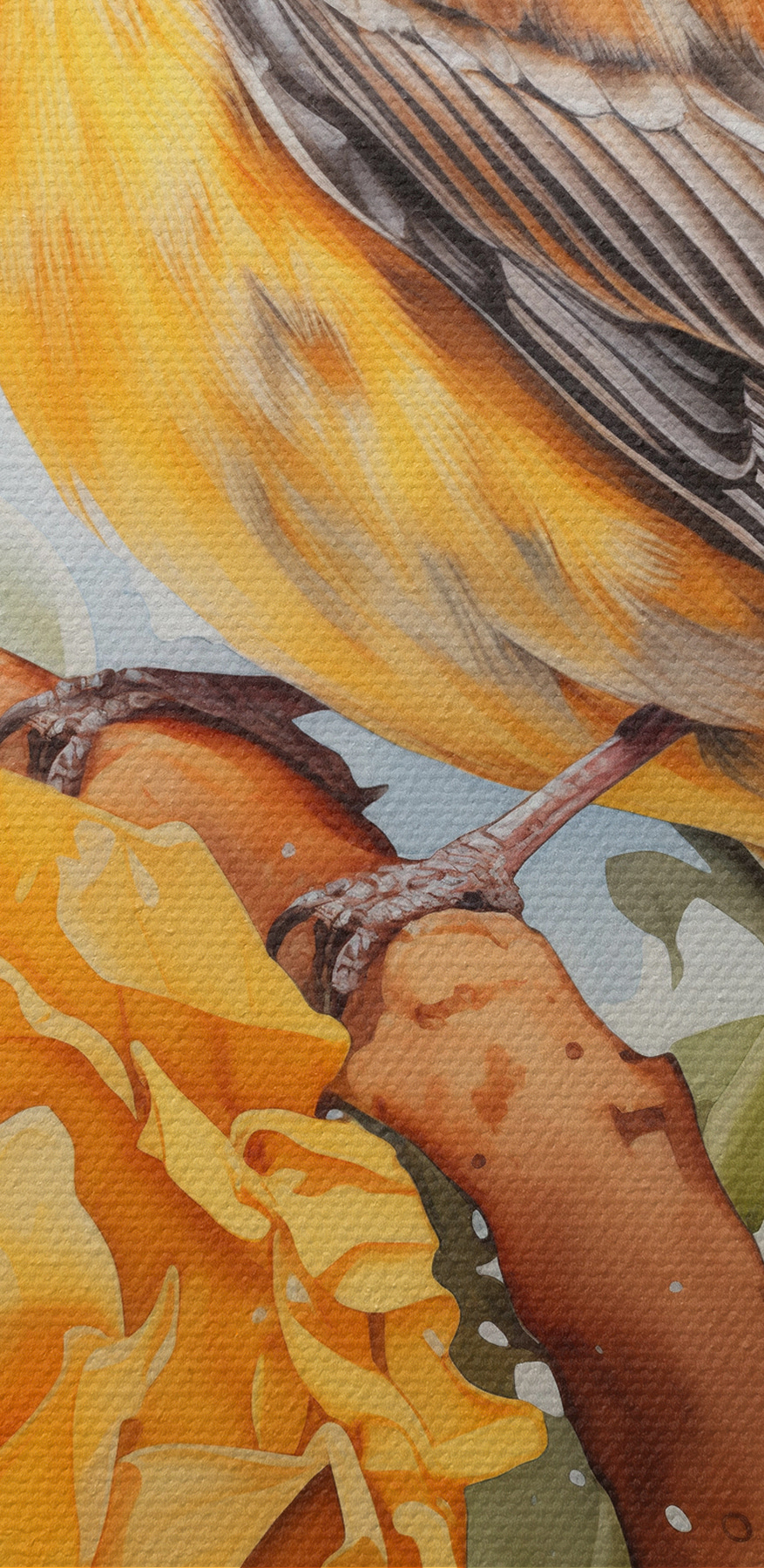 Aduceți un strop de natură în interior cu această imprimare fermecătoare pe pânză a unei păsări cocoțată pe o ramură, înconjurată de flori vibrante. Imaginați-vă-o într-o cameră de zi confortabilă sau chiar într-o bucătărie veselă – este ca și cum ați adăuga puțină liniște în aer liber în casa dvs. Culorile blânde și designul plin de viață creează o atmosferă caldă și primitoare, perfectă pentru acele momente în care este nevoie de un strop de bucurie. Imaginați-vă sorbindu-vă cafeaua de dimineață în timp ce priviți această scenă luminoasă; este ca un mic moment de fericire, de fiecare dată când aruncați o privire. O amintire atât de frumoasă că frumusețea este pretutindeni!