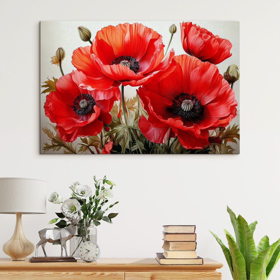 Imaginați-vă că intrați într-o cameră în care un strop de roșu vibrant vă întâmpină cu petale deschise. Aceasta este magia tabloului “Tablouri Group of Red Flowers”. Perfectă pentru camera de zi, această piesă nu este doar artă – este un starter de conversație. Este ca și cum ai avea o grădină care nu trebuie udată niciodată, dar care rămâne mereu înflorită. S-ar putea chiar să visați cu ochii deschiși la câmpurile însorite în timp ce vă sorbiți cafeaua de dimineață. Îndrăzneață, dar elegantă, aduce o notă de dramatism al naturii în orice decor. Nu este doar o imprimare; este o stare de spirit!