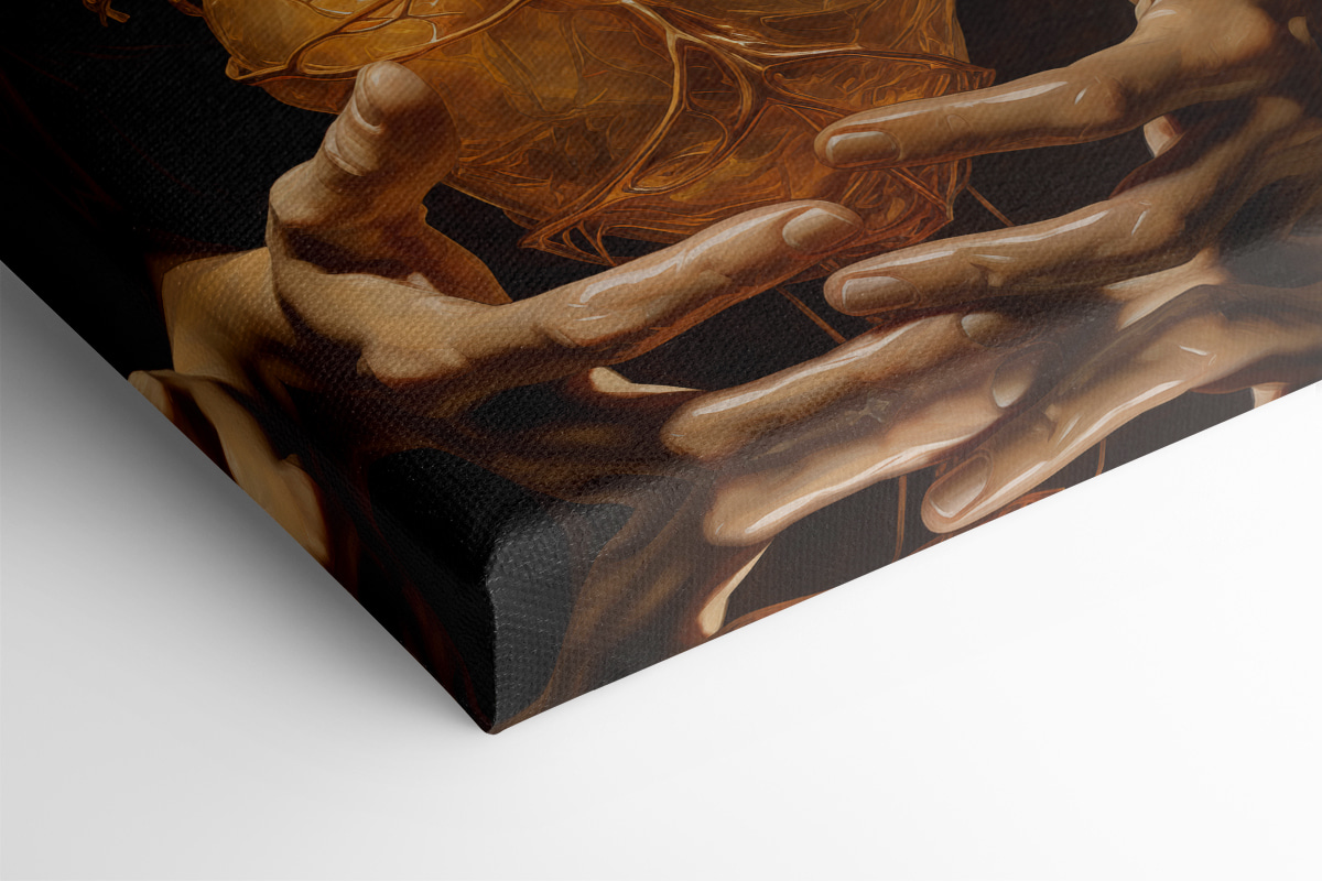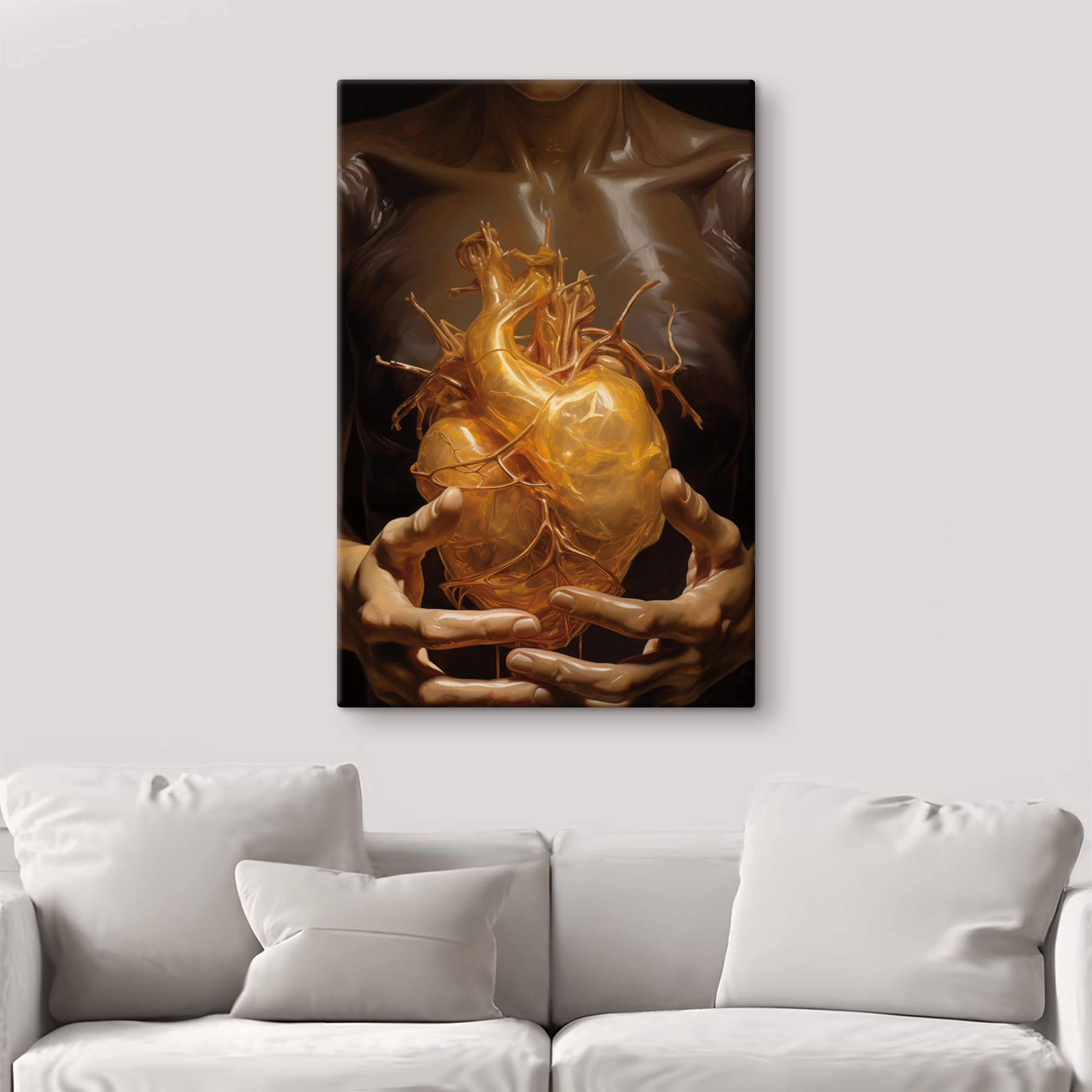 Imaginați-vă o seară liniștită în camera dvs. de zi. Tocmai v-ați așezat pe canapea, când ochii dvs. surprind această imprimare intrigantă pe pânză – cea intitulată “Persoană ținând o inimă umană”. Nu este arta ta de zi cu zi. Nu, domnule. Este abstractă, dar profund umană, stârnind conversații și curiozitate. Culorile, sentimentul de a ține în mână ceva atât de vital, atât de viu, adaugă căldură și poate o notă de mister. Perfect pentru cei cărora le place arta care îi face să gândească sau chiar ceva puțin… înduioșător.