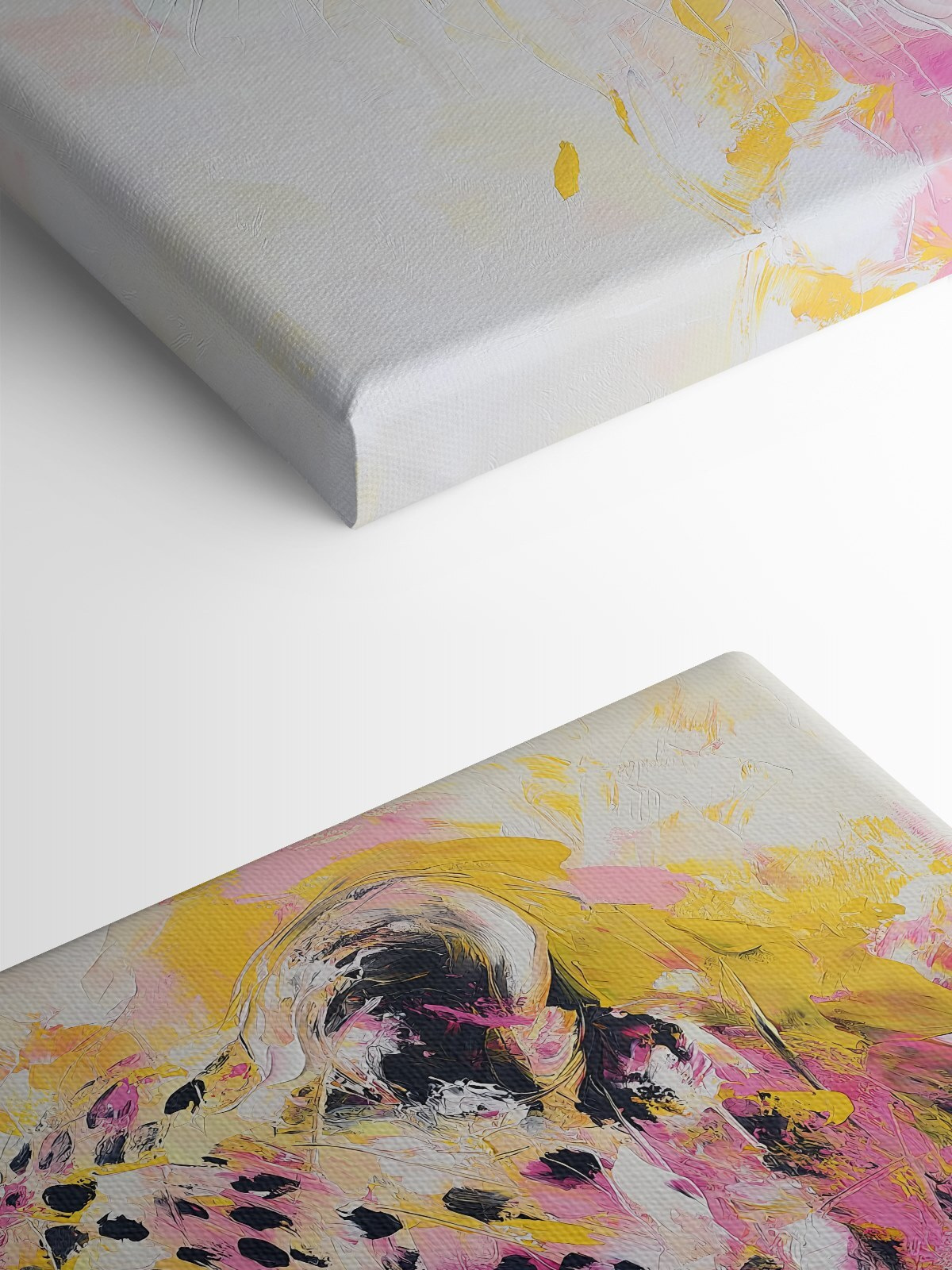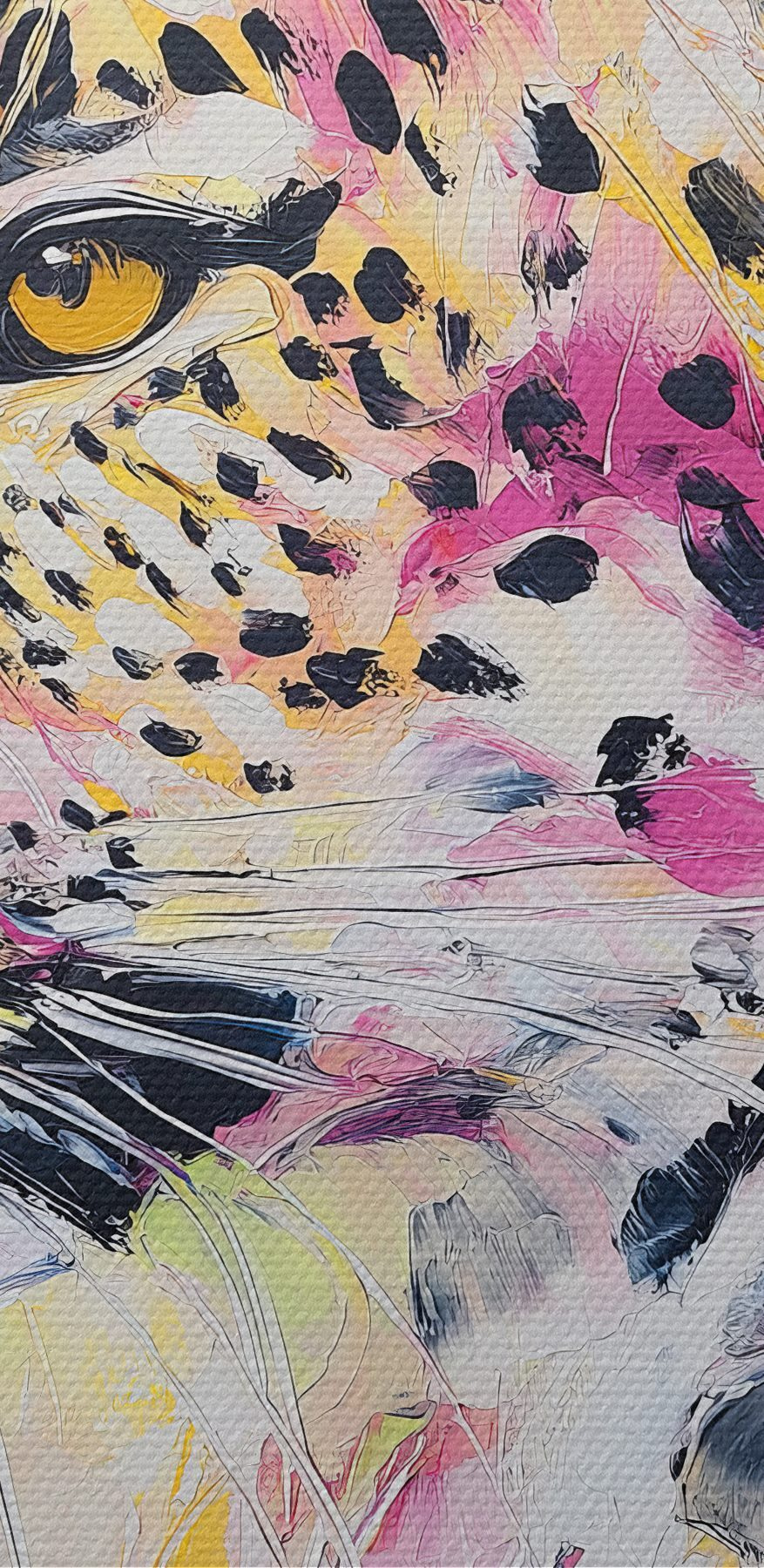 Această imprimare pe pânză vibrantă a unui ghepard este ca un strop de culoare sălbatică în camera ta. Atrage privirile, nu-i așa? Amestecul de galben și roz îndrăzneț – aproape ca și cum ghepardul ar avea o zi la spa – aduce o notă abstractă eleganței sale feroce. Imaginează-ți că intri în sufrageria ta; simți că această pisică mare este colega ta de cameră răcoroasă, motivându-te în tăcere să fii îndrăzneț și liber-spiritual. Perfect pentru oricine iubește arta care face impresie, dar nu se ia prea în serios!