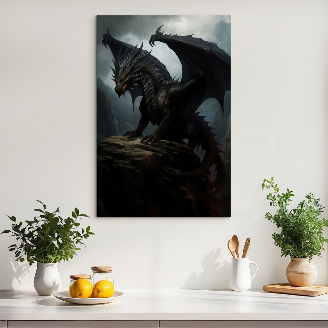 Faceți cunoștință cu majestuoasa imprimare pe pânză “Black Dragon on a Rock”, gata să aducă o notă de aventură în orice cameră. Această piesă impresionantă prezintă un dragon puternic cocoțat pe o stâncă aspră, emanând putere și mister. Imaginați-vă-o pe perete – prietenii s-ar putea chiar să vă întrebe dacă adăpostiți povești mitice! Negrul profund și accentele aprinse îi conferă o intensitate care atrage privirea și stârnește imaginația. Perfect pentru un birou confortabil sau un spațiu de birou îndrăzneț, este ca și cum ai avea un gardian care te supraveghează. Fie că este piesa centrală a unui colț cu tematică fantastică sau doar un punct de pornire a conversației, acest print adaugă personalitate și farmec ca nimeni altul. Cine ar fi crezut că decorarea poate fi atât de epică?