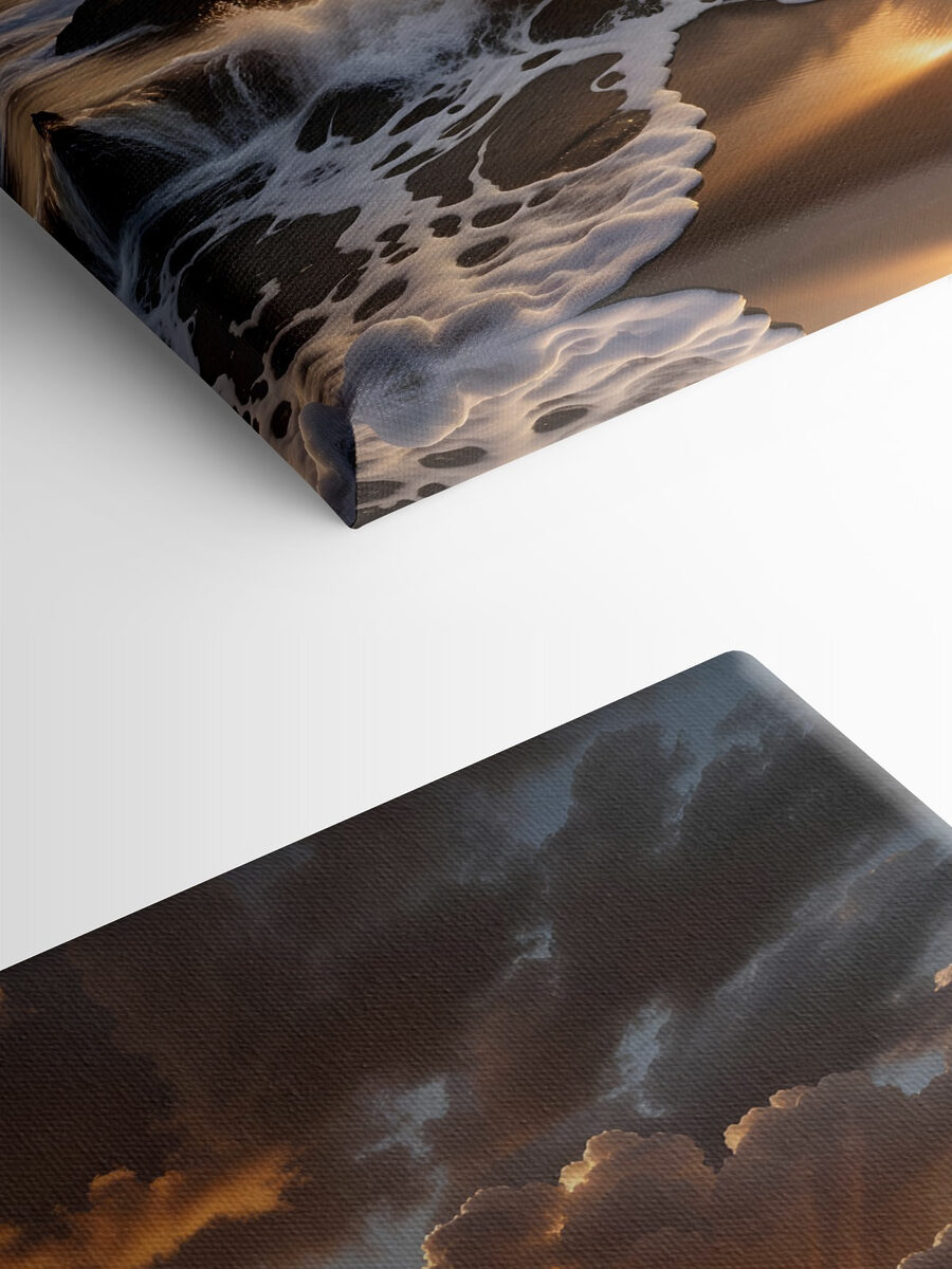Imaginați-vă că ajungeți acasă la un apus de soare vibrant care vă pictează pereții în nuanțe calde, cu un corp de apă liniștit care aduce acea vibrație liniștită în interior. Această imprimare pe pânză surprinde magia naturii, acolo unde apusul de soare întâlnește marea. Imaginați-vă stând la o ceașcă de ceai, simțindu-vă ca și cum v-ați afla chiar pe plajă, în timp ce valurile ating ușor țărmul. Este ca o mini-vacanță din confortul de acasă! Perfectă pentru orice spațiu care are nevoie de o notă de calm, această operă de artă invită la visare cu ochii deschiși, relaxare și un strop de dorință de a călători – toate înfășurate într-o îmbrățișare vizuală uimitoare. Nu este doar o decorațiune; este un stimulent al dispoziției!