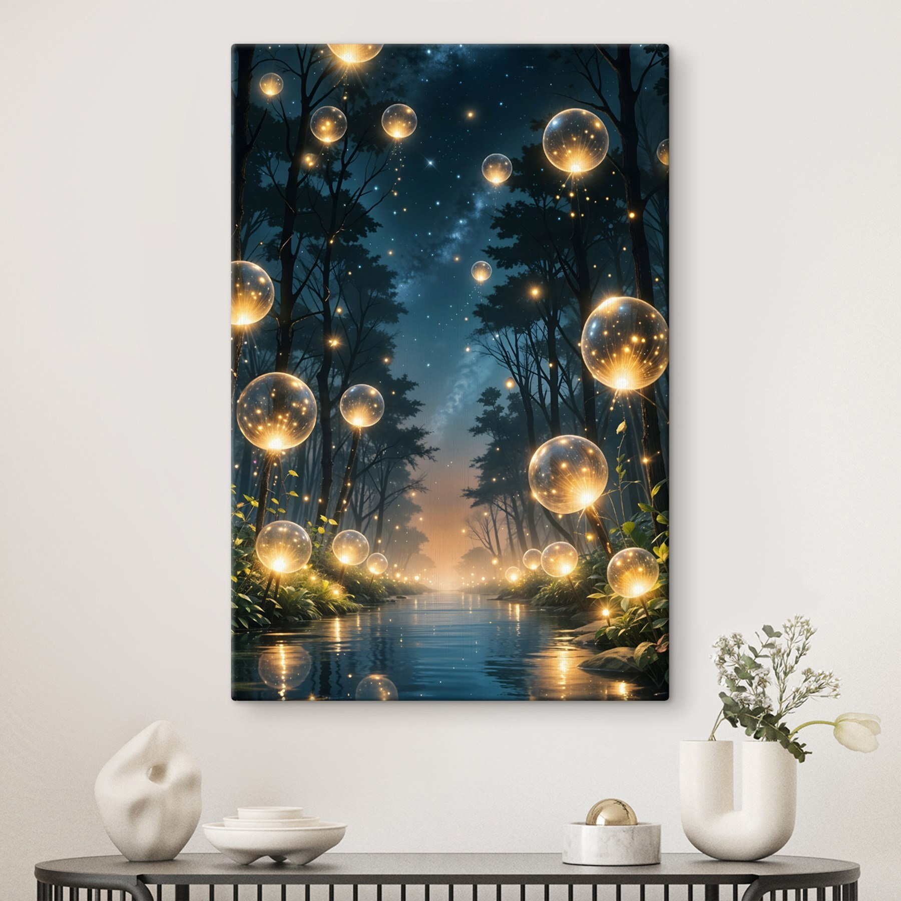 Intrați într-o lume în care bulele strălucitoare dansează printre copaci, creând o evadare capricioasă. Acest print pe pânză, “Glowing Bubbles in a Forest”, vă invită să vă imaginați o plimbare liniștită de seară, sunetele suave ale naturii amestecându-se cu strălucirea blândă din jurul dumneavoastră. Vă simțiți ca într-un basm desfășurat chiar în sufrageria dvs. Nuanțele acuarelei vă învăluie în căldură, făcând orice spațiu să fie primitor. Perfect pentru cei care se bucură de farmecul naturii sau care vor doar să viseze puțin cu ochii deschiși. Agățați-o și lăsați pereții să vorbească – musafirii s-ar putea chiar să întrebe dacă este un portal secret!