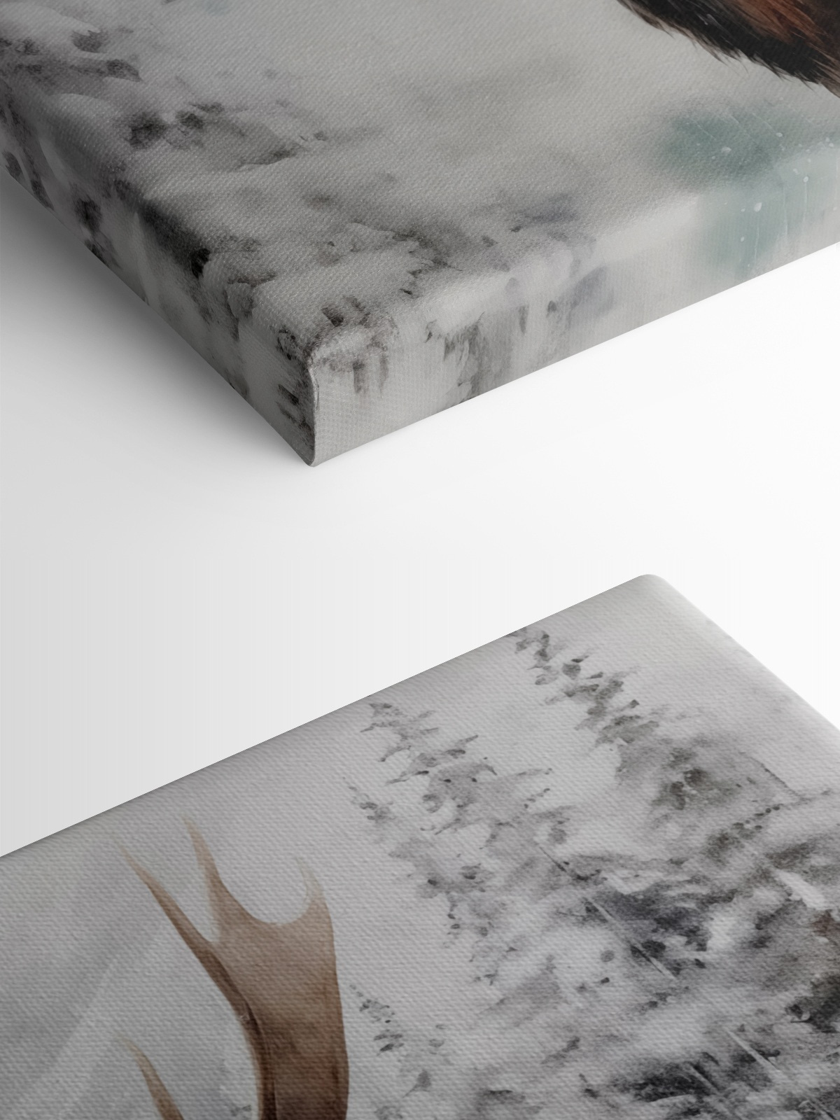 Imaginați-vă o scenă de iarnă confortabilă, chiar în camera dvs. de zi – nu este nevoie de mănuși. Această imprimare pe pânză a unui elan maiestuos, care își arată cu mândrie coarnele, vă duce direct într-o pădure înzăpezită. Este ca un strop de natură fără degerături. Perfect pentru oricine iubește chemarea sălbăticiei, dar preferă căldura căminului său. Așadar, cuibărește-te cu cacao fierbinte și lasă acest elan să aducă o șoaptă de aventură în spațiul tău. Este un pic sălbatic, un pic senin și total magic.