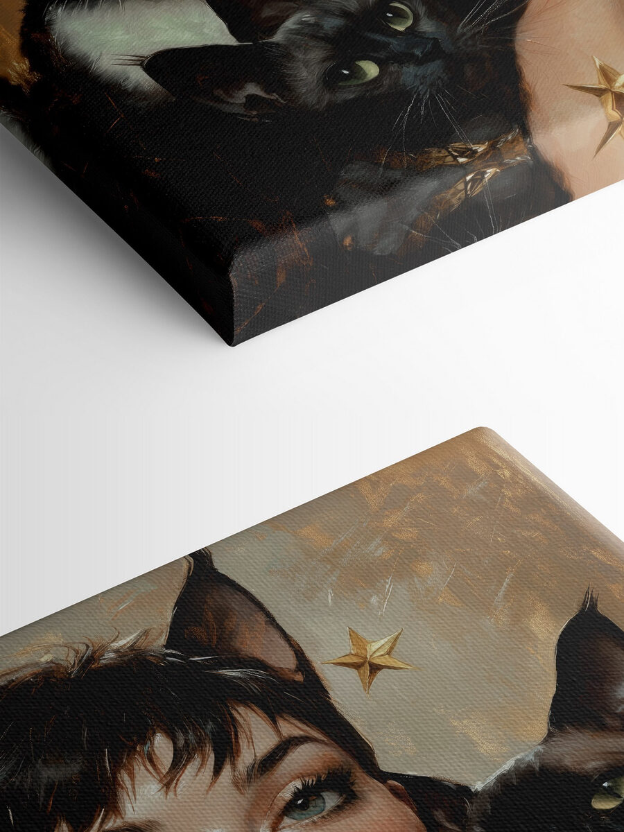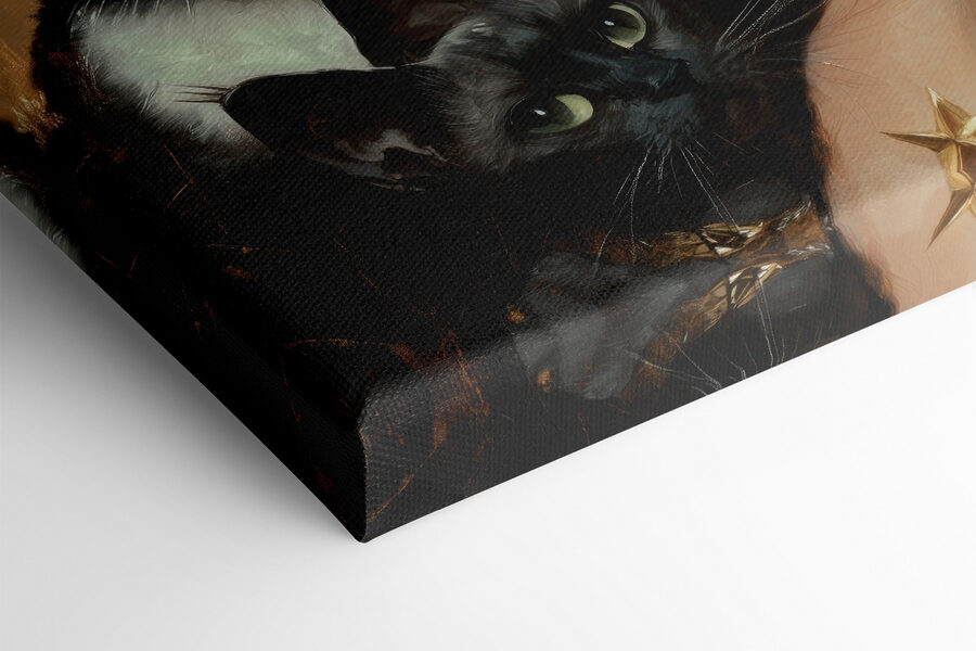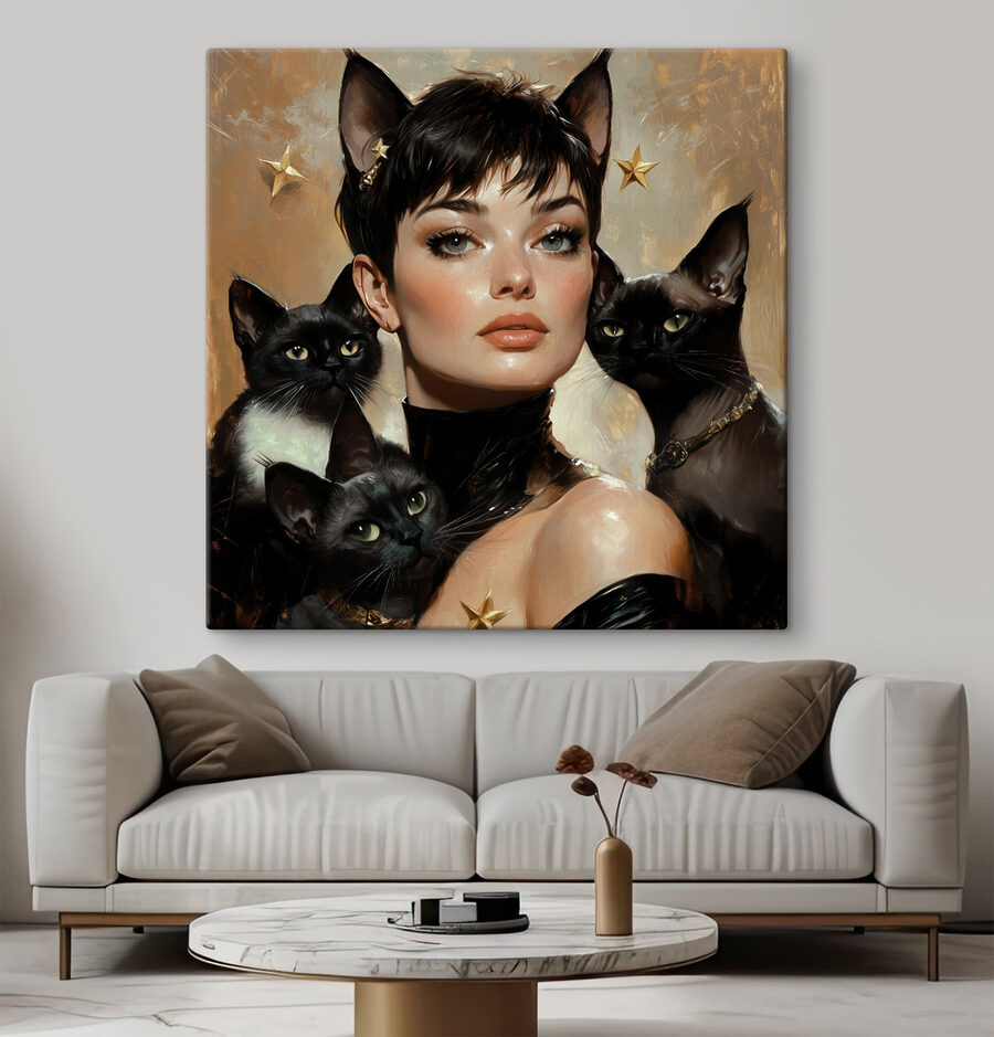 Imaginați-vă o lume în care pisicile sunt stăpâne pe casă, sau cel puțin pe pereții dumneavoastră! Această imprimare captivantă pe pânză, “Femeie cu pisici în jurul gâtului”, este perfectă pentru oricine apreciază un pic de fantezie în decorul său. Imaginați-vă acest lucru: oaspeții dvs. intră și observă instantaneu ochii fermecători ai pisicilor, aproape provocându-vă să puneți la îndoială înțelepciunea lor felină. Este ca și cum fiecare pisică ar avea un secret de împărtășit, șoptindu-vă povești despre aventuri și somn confortabil. Această piesă aduce căldură, farmec și un strop de mister în orice cameră – un adevărat starter de conversație cu o parte de toarce.