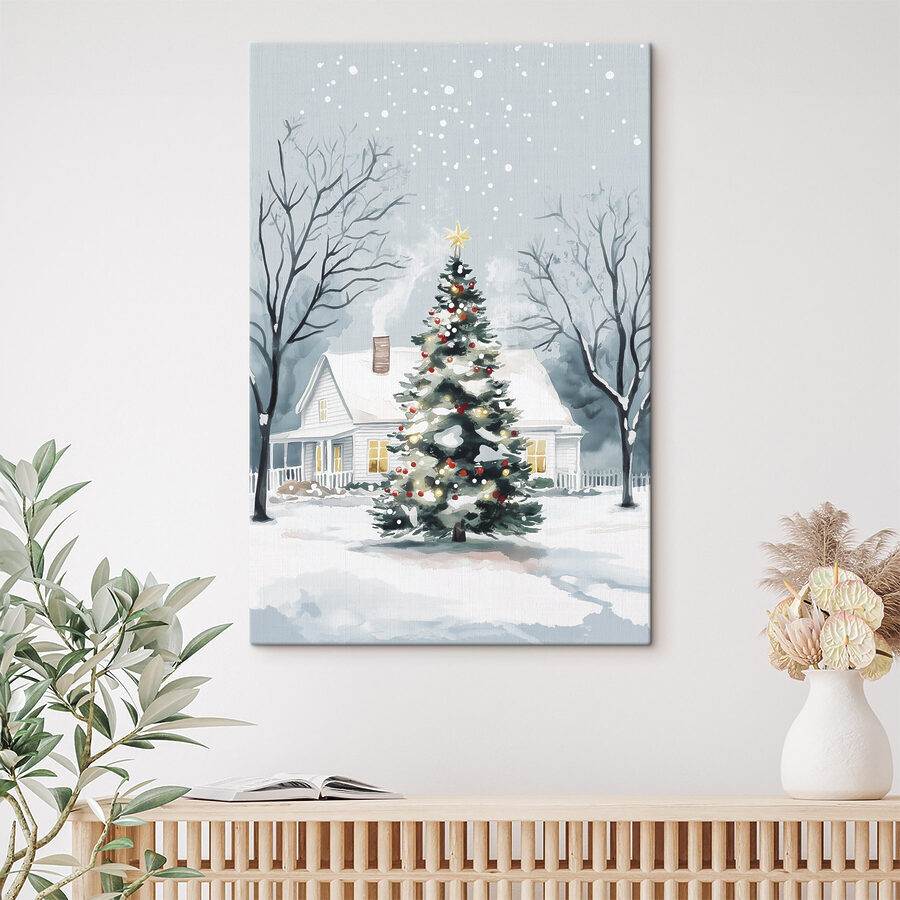Transformați-vă spațiul cu această imprimare pe pânză încântătoare, “Pom de Crăciun în fața unei case”. Imaginați-vă-o: o casă confortabilă acoperită de zăpadă, cu un brad orbitor strălucind sub cerul de iarnă. Este ca o îmbrățișare caldă pentru pereții dvs. – perfectă pentru a aduce un strop de veselie de sărbători pe tot parcursul anului. Imaginați-vă că vă relaxați cu cacao fierbinte în apropiere, simțind nostalgia acelor nopți festive, râsetele răsunând și poate chiar un om de zăpadă așteptând afară. Această imprimare nu este doar decor; este o amintire a momentelor vesele, a întâlnirilor confortabile și a magiei care face iarna specială. Lăsați-o să vă lumineze casa și inima!