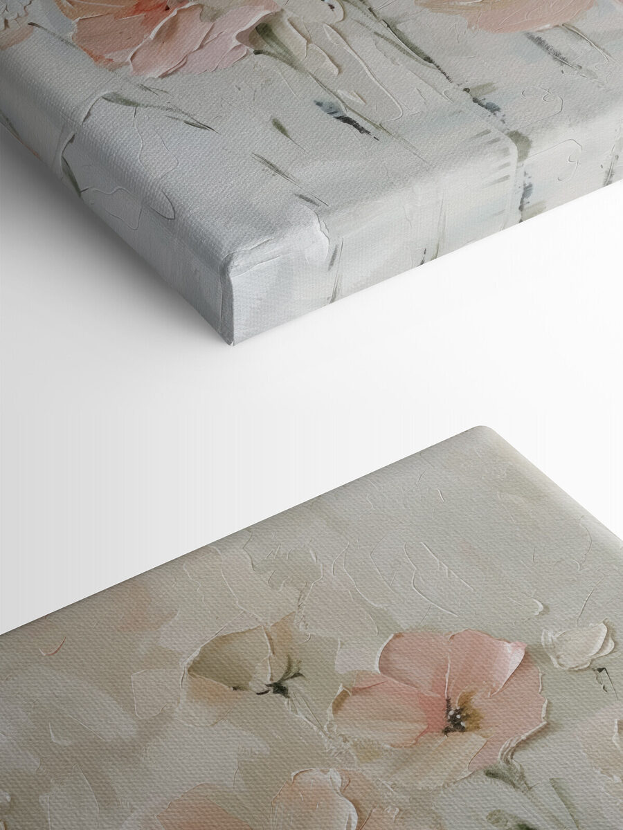Imaginați-vă că pășiți într-o cameră confortabilă, amestecându-vă cu parfumul florilor proaspete – fără strănuturi, desigur! Acest print pe pânză este ca o șoaptă moale pe perete, împrăștiind flori roz delicate în spațiul tău. Fiecare lovitură de vopsea pare să danseze, invitând la un sentiment de liniște și căldură. Perfectă pentru diminețile liniștite în care sorbiți cafea sau pentru serile relaxante cu o carte, aduce o notă de natură în interior. Nu este doar artă; este o vibrație, un pic de bucurie, precum găsirea unei flori într-un loc neașteptat. Serios, cine nu ar zâmbi la asta?