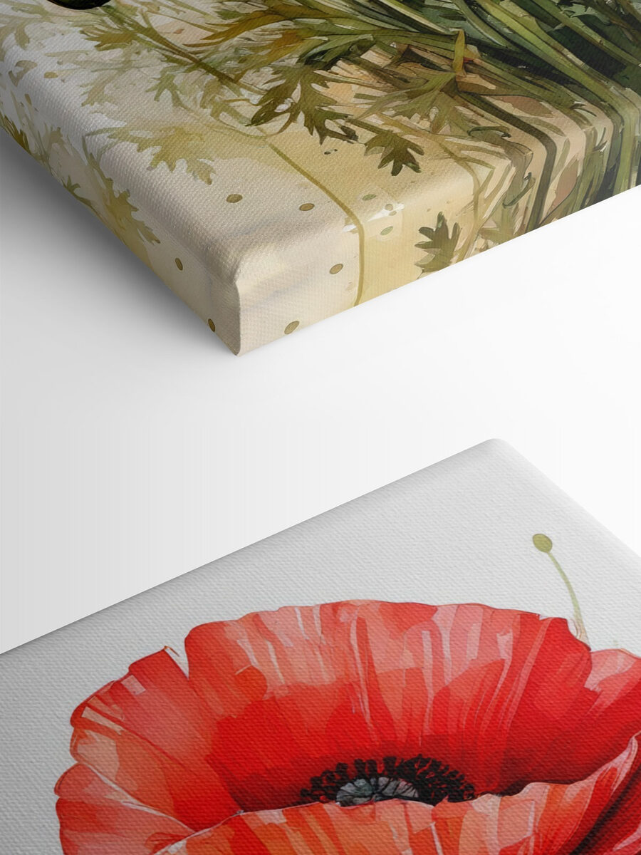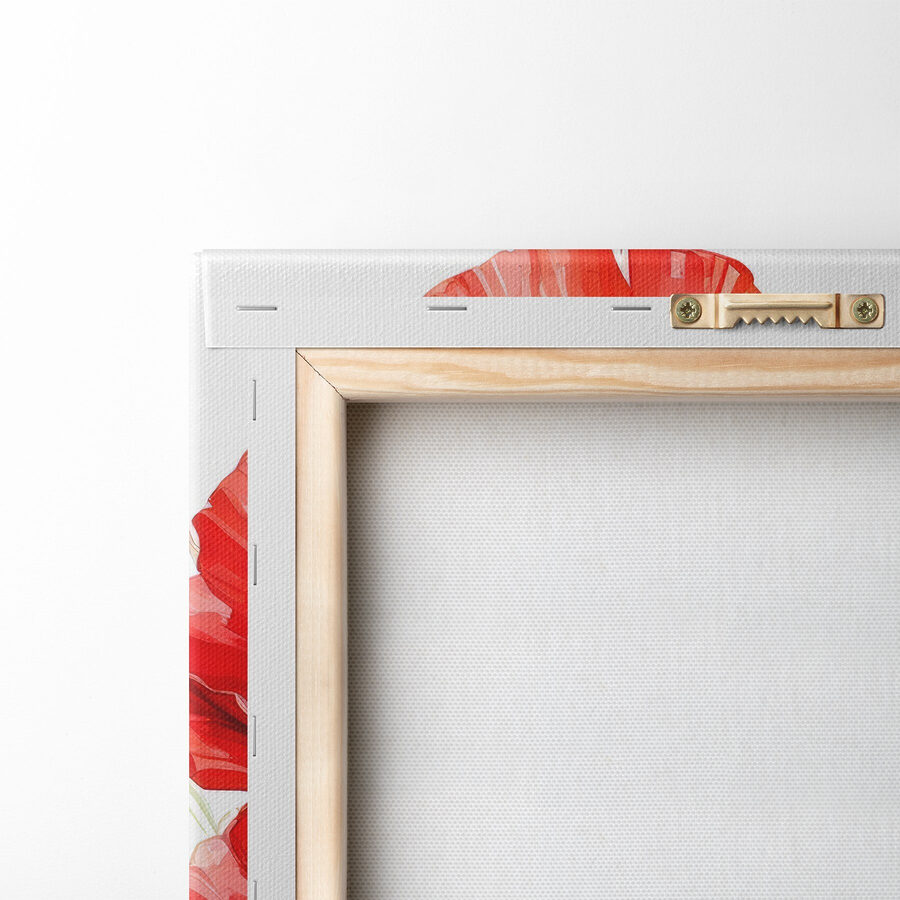 Imaginați-vă această imprimare pe pânză – o pictură cu flori roșii vibrante – înviorând camera dvs. preferată. Aceste flori par să iasă în evidență, ca și cum ar fi pe cale să își dezvăluie secretele lor dulci. Este ceva în legătură cu roșul izbitor care atrage atenția – nu prea tare, dar cu siguranță există. Este ca și cum ai avea pe perete o felie dintr-o grădină însorită. Perfect pentru acele zile în care ai nevoie de un pic mai multă culoare în viața ta. Nu-i așa că aceste flori ar stârni conversații? În plus, nu necesită udare!