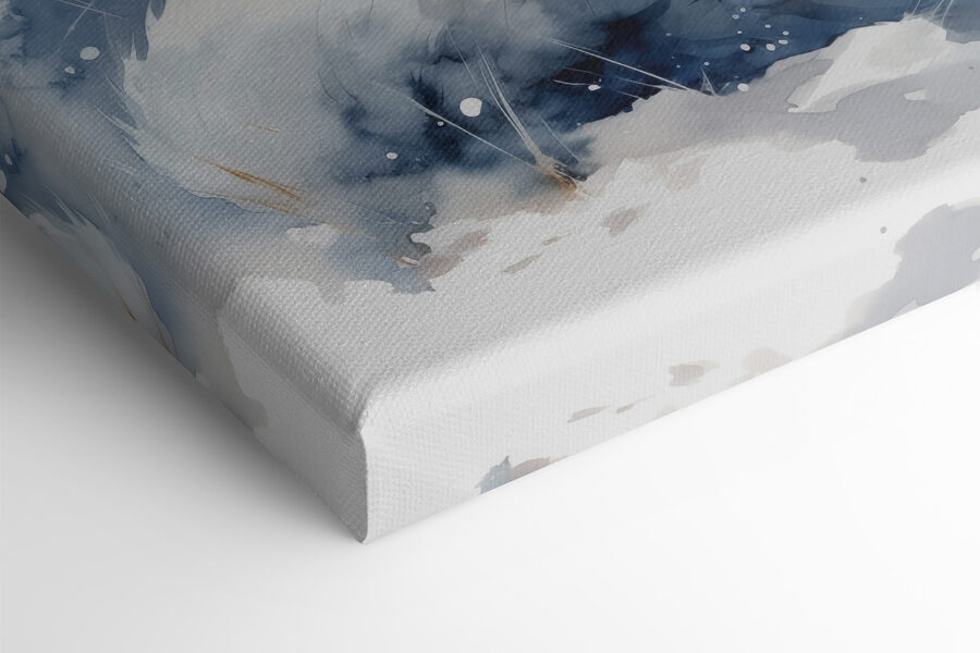 Imaginați-vă că intrați într-o cameră și găsiți o vulpiță fermecătoare, ghemuită și confortabilă într-o țară a minunilor de iarnă. Acest print pe pânză în acuarelă surprinde perfect acel moment senin, cu albastrul moale și albul blând care șoptesc liniște. Este ca și cum vulpea vă invită să respirați și să vă bucurați de liniștea naturii.