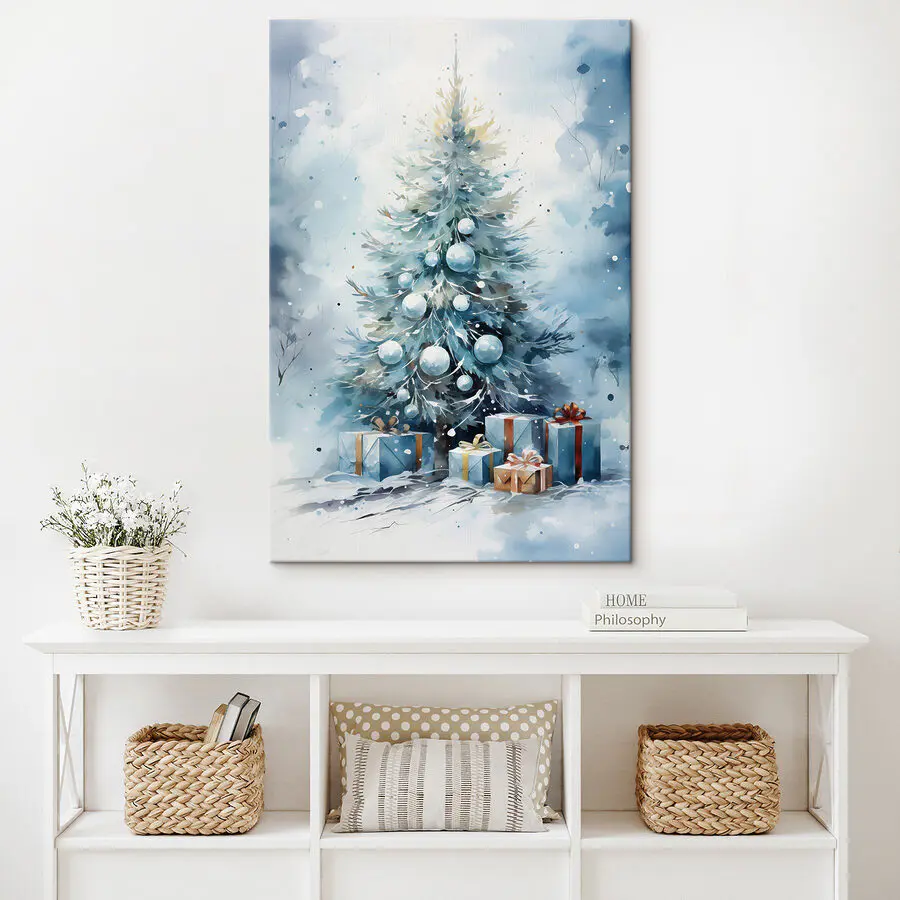 Transformați-vă spațiul într-un tărâm al minunilor de iarnă cu această imprimare minunată în acuarelă a unui pom de Crăciun, decorațiuni strălucitoare și cadouri perfect ambalate. Imaginați-vă că vă înveliți cu o pătură confortabilă, cu cacao fierbinte în mână, în timp ce această scenă senină aduce o notă de veselie de sărbători pe pereții dvs. Albastrul moale și tușele blânde ale pensulei creează o atmosferă liniștitoare, perfectă pentru orice cameră. Este ca și cum ai avea un spirit festiv care îți șoptește încet: “Bucură-te de magie!” În plus, este o frumoasă amintire a faptului că cele mai bune cadouri nu se găsesc întotdeauna sub brad, ci în momentele împărtășite. Agățați-l unde îl puteți vedea și lăsați magia să se desfășoare pe tot parcursul sezonului!