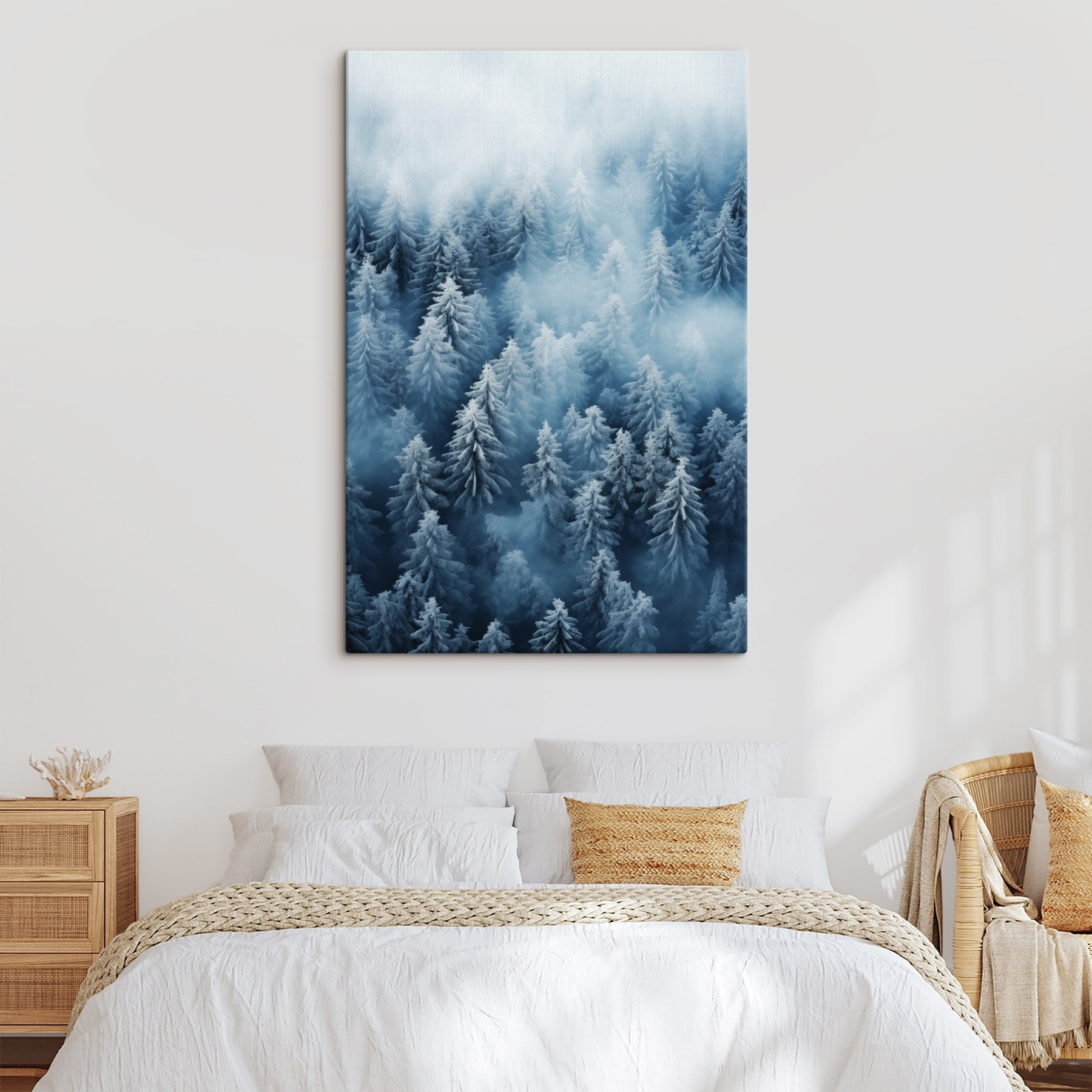 Pășiți într-o țară a minunilor de iarnă cu această imprimare uimitoare pe pânză a copacilor acoperiți de o pătură confortabilă de zăpadă. Este ca și cum ai aduce o felie dintr-o pădure senină chiar în sufrageria ta – atât de liniștită, încât s-ar putea să simți că ar trebui să șoptești! Albastrul și albul se îmbină fără efort, fiind un punct central atrăgător. Imaginați-vă că vă relaxați cu o ceașcă de cacao fierbinte, privind această scenă frumoasă. Perfectă pentru a adăuga o notă de magie a naturii în orice spațiu, aceasta va stârni cu siguranță conversații confortabile. Pregătiți-vă doar ca prietenii să vă întrebe unde ați găsit-o!